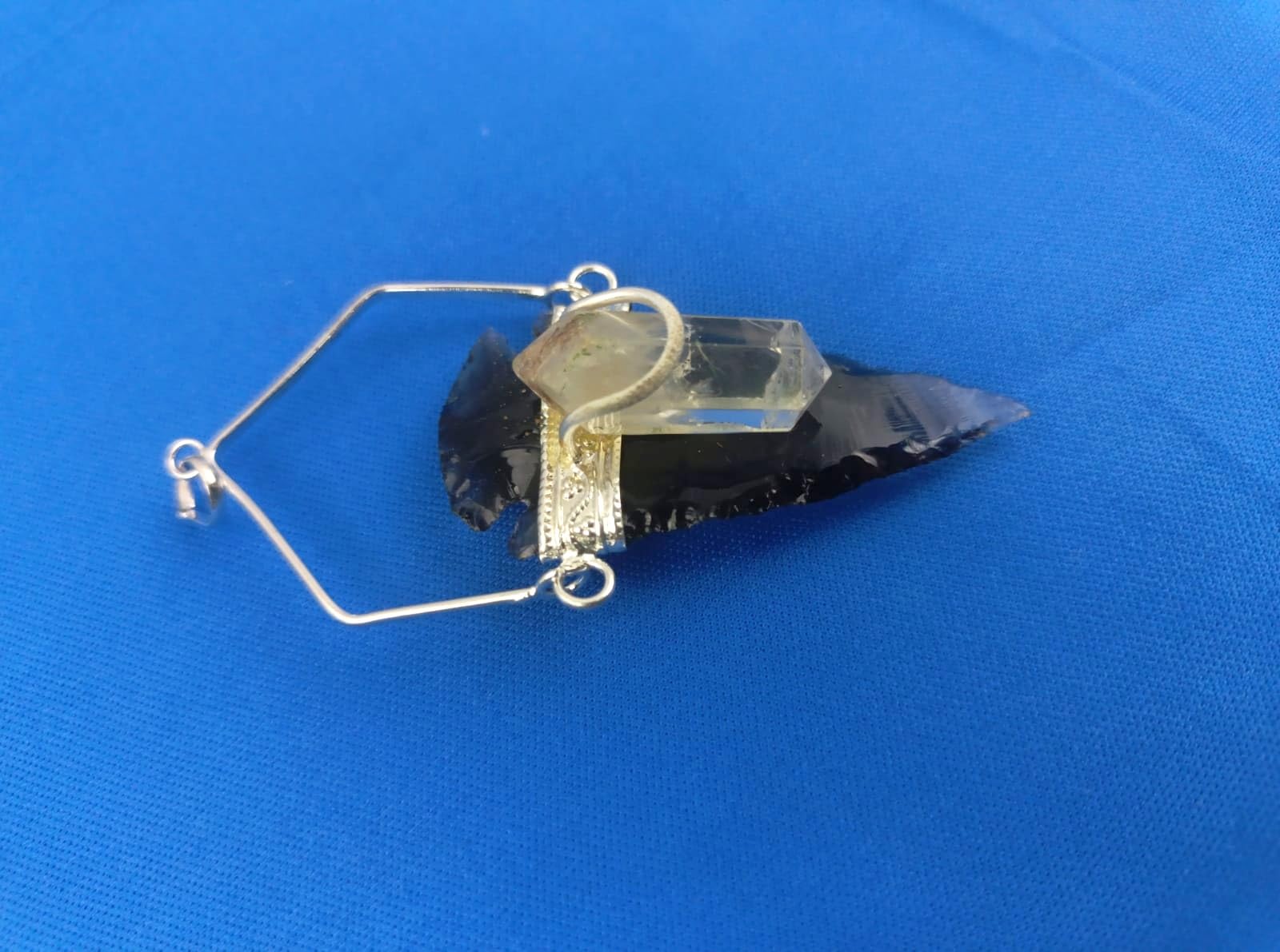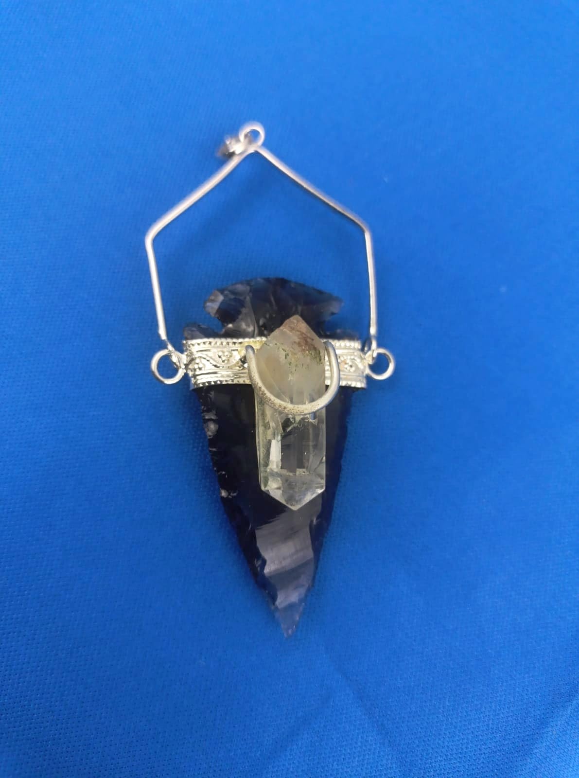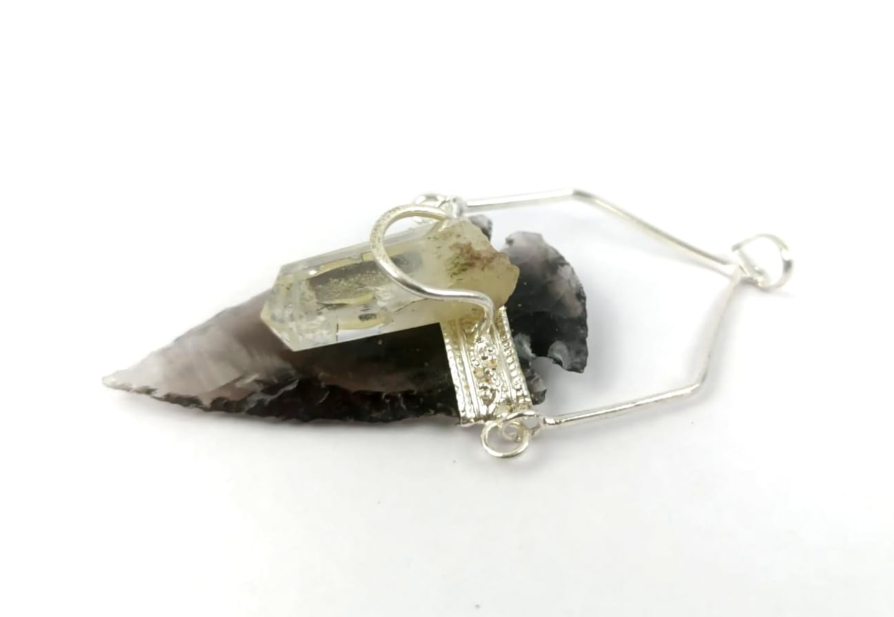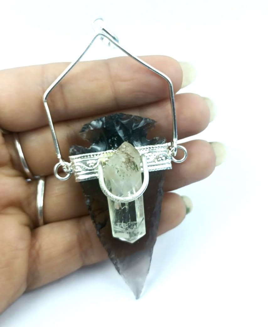 BuyBlack Obsidian silver Arrowhead Pendant | Gemstone healing | Crystal Therapy | Natural crystal Pendant
