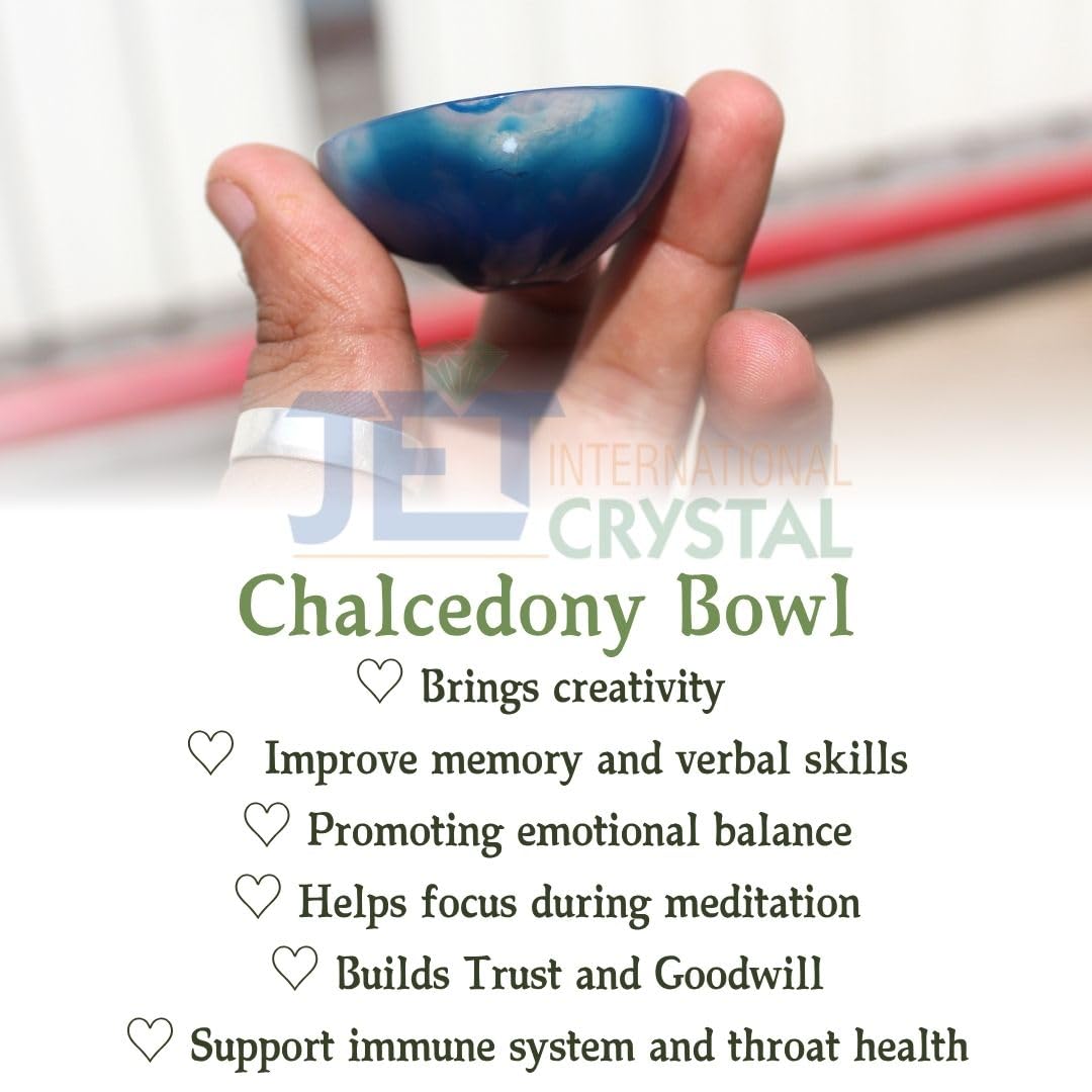 Natural Blue Chalcedony: Hand-carved 2-inch gemstone bowl crafted from authentic Jet Blue Chalcedony with soothing blue hues.