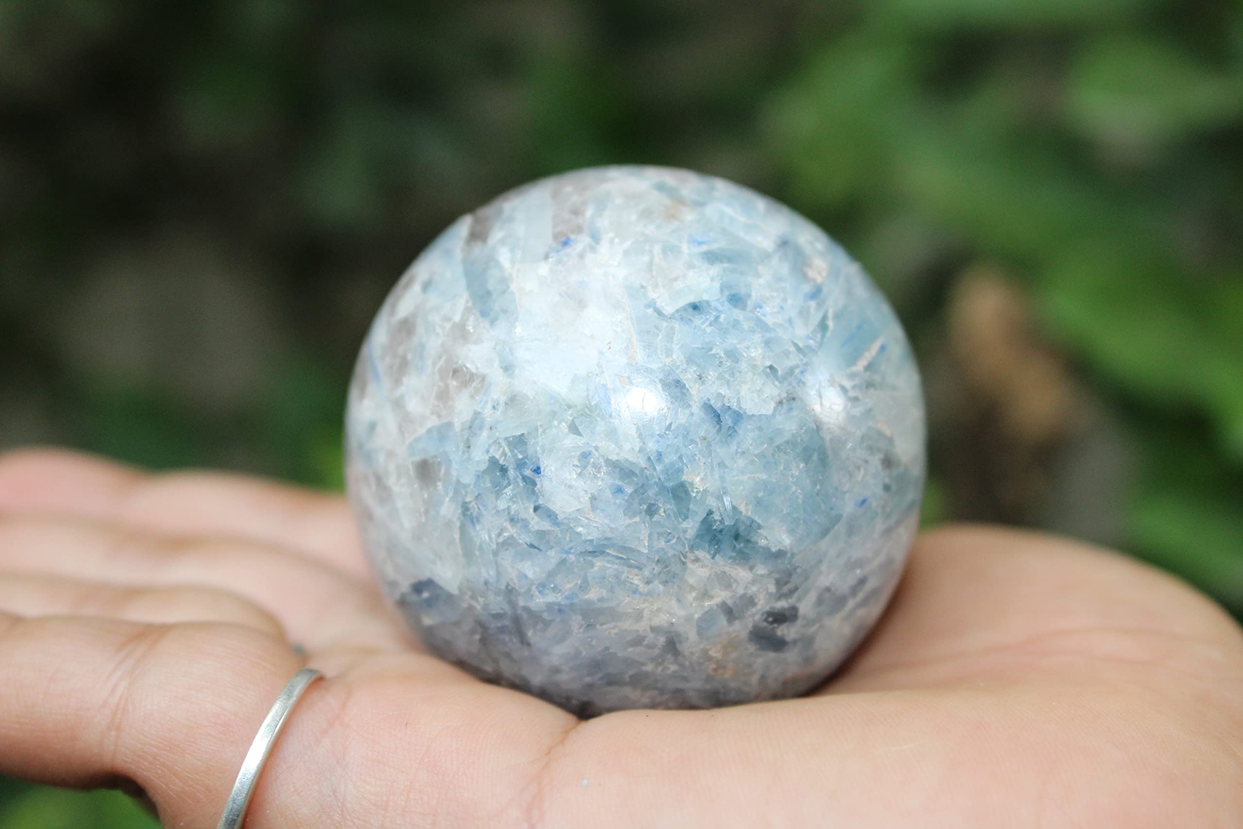 Authentic Blue Kyanite Sphere – Handcrafted gemstone ball (50-55 mm) made from natural blue kyanite, known for its soothing and healing vibrations.