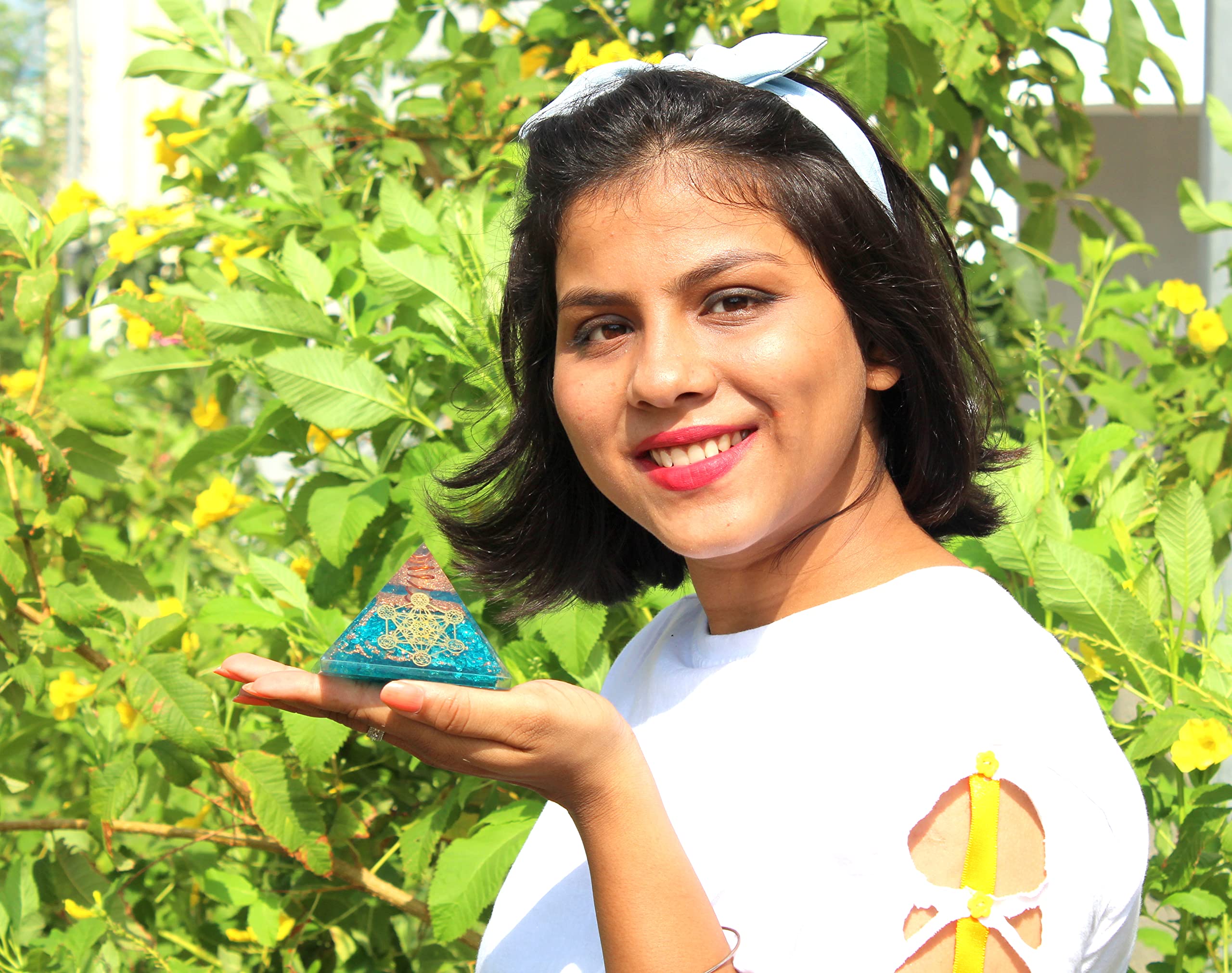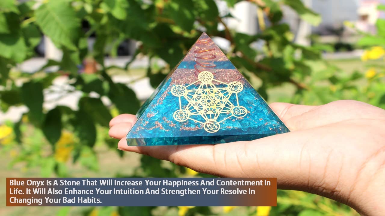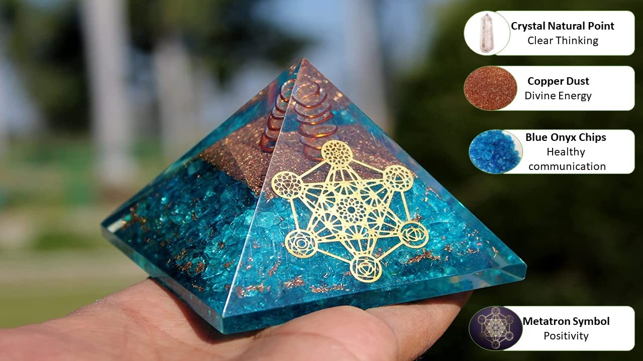 BuyBlue Onyx Orgone Metatron Pyramid | Meditation & Confidence | Handmade | Home Office Decor