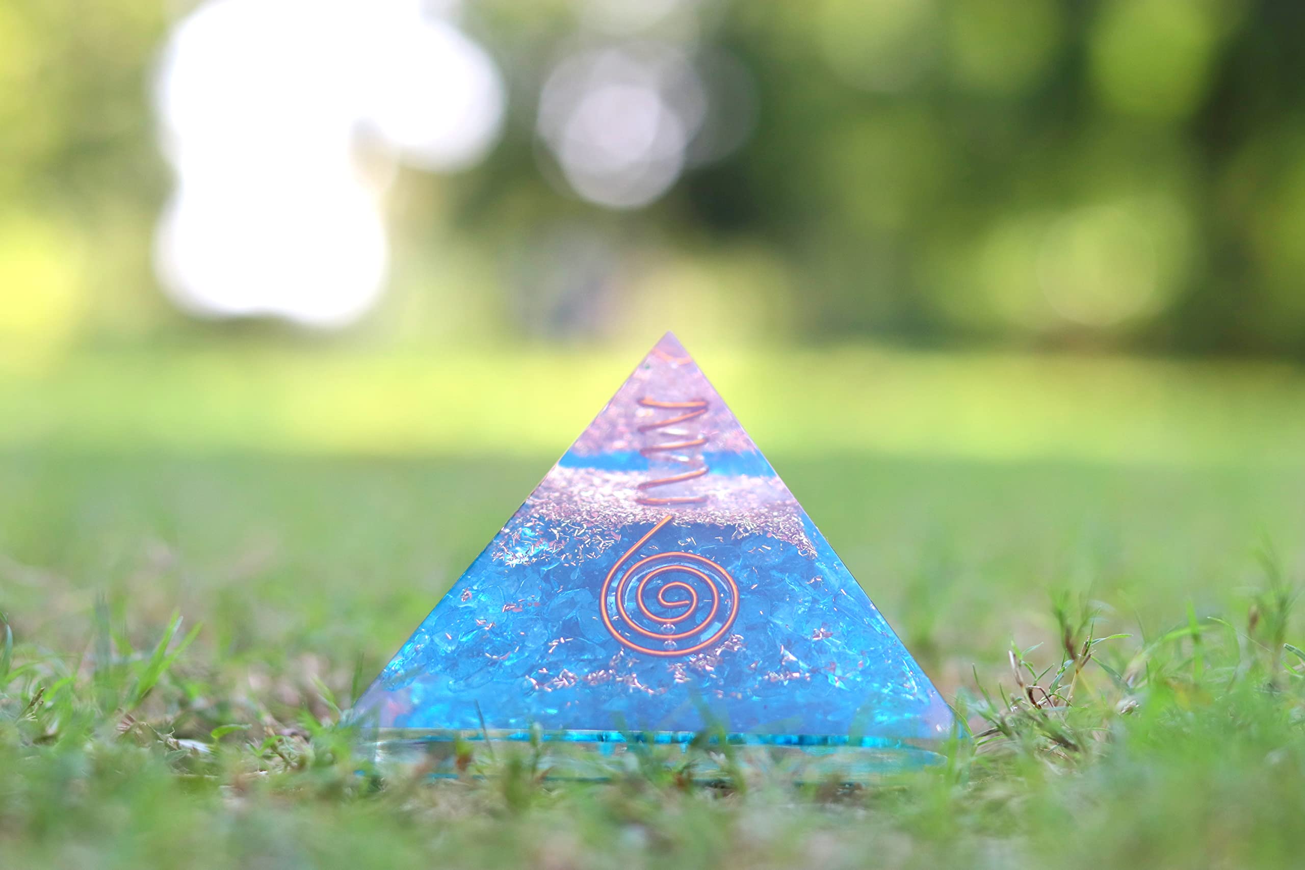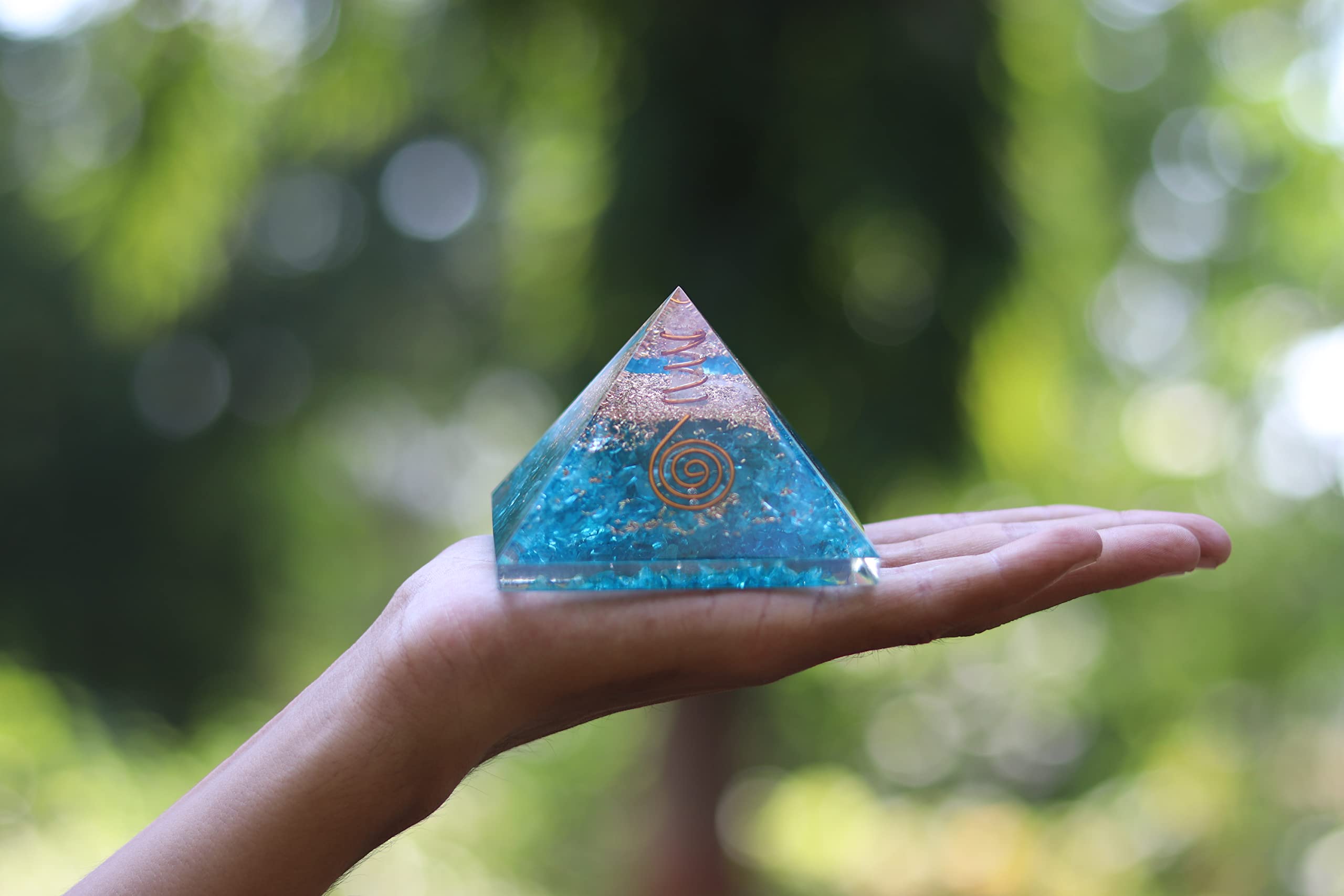 Jet Blue Onyx Orgone Pyramid Lucky Ions Generator 2.5 inch Copper Coil. This is a wonderful piece of art giving lots of Strength, Power, Mental Peace to whosoever wears it. Kindly note that since all our products are handcrafted and carved there exists slight deviation in size, shape, color, looks compared to the image shown here; however the Healing Qualities & Metaphysical Properties are EXCELLENT. Image is just a reference. Best for Peace, Power, Prosperity.
