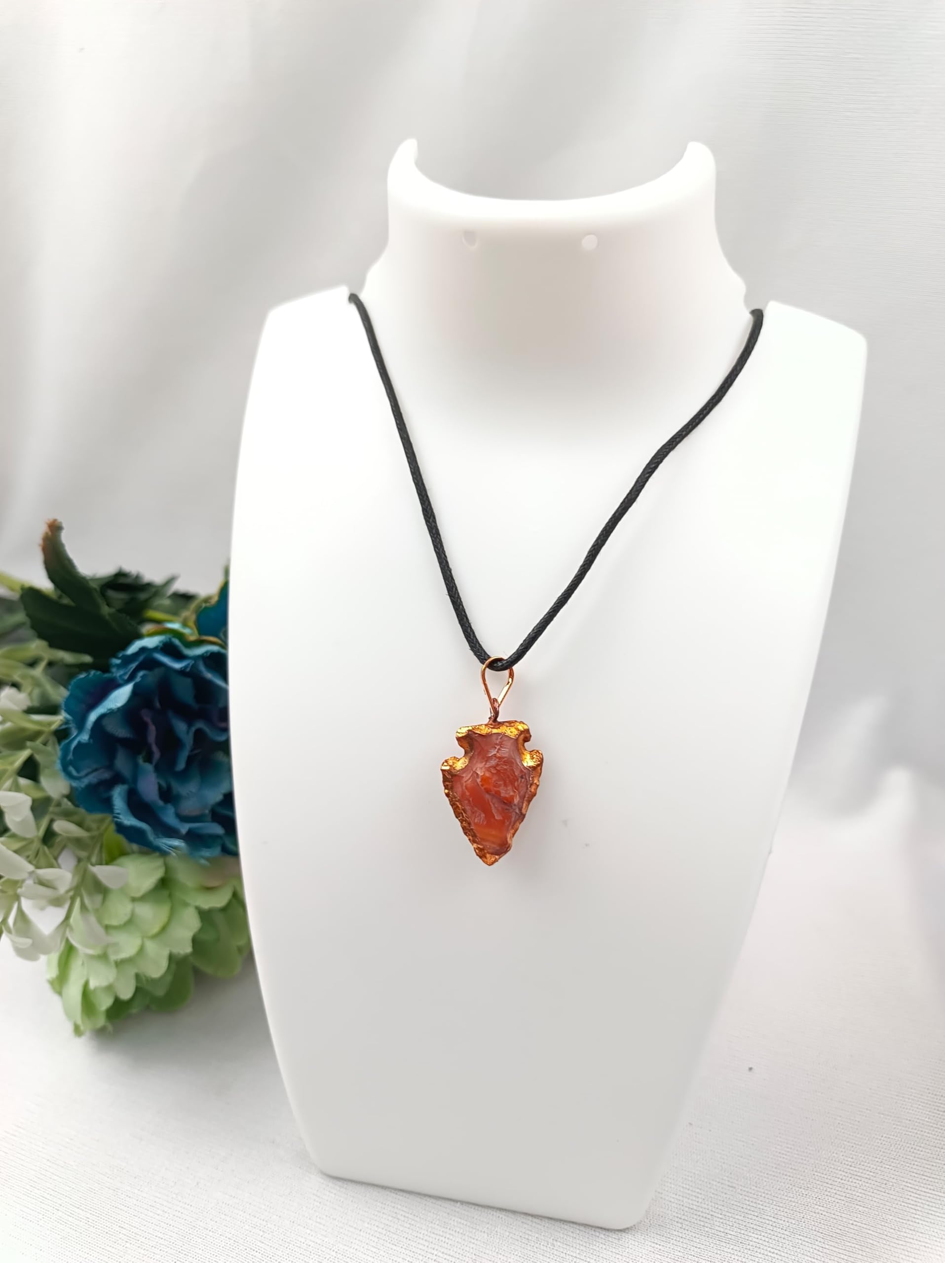 Jet Carnelian Gold Plated Arrowhead Pendant. Kindly note that since all our products are handcrafted and hand-carved there exists slight deviation in size, shape, color and looks compared to the image shown here. However, the Healing Qualities and Metaphysical Properties are EXCELLENT.