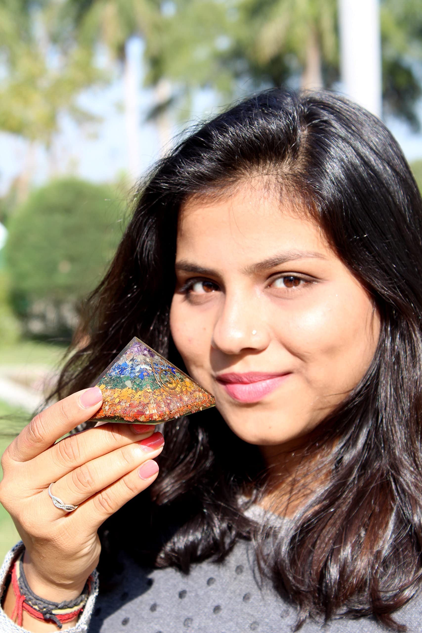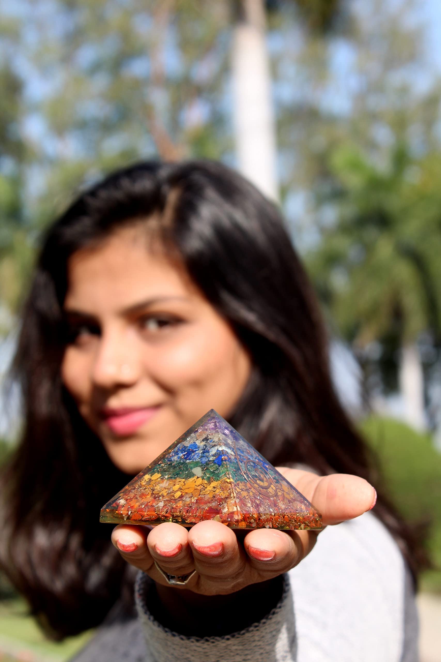 BuyChakra layer Orgone Pyramid | Chakra Balancing | Handmade | Home Office Decor