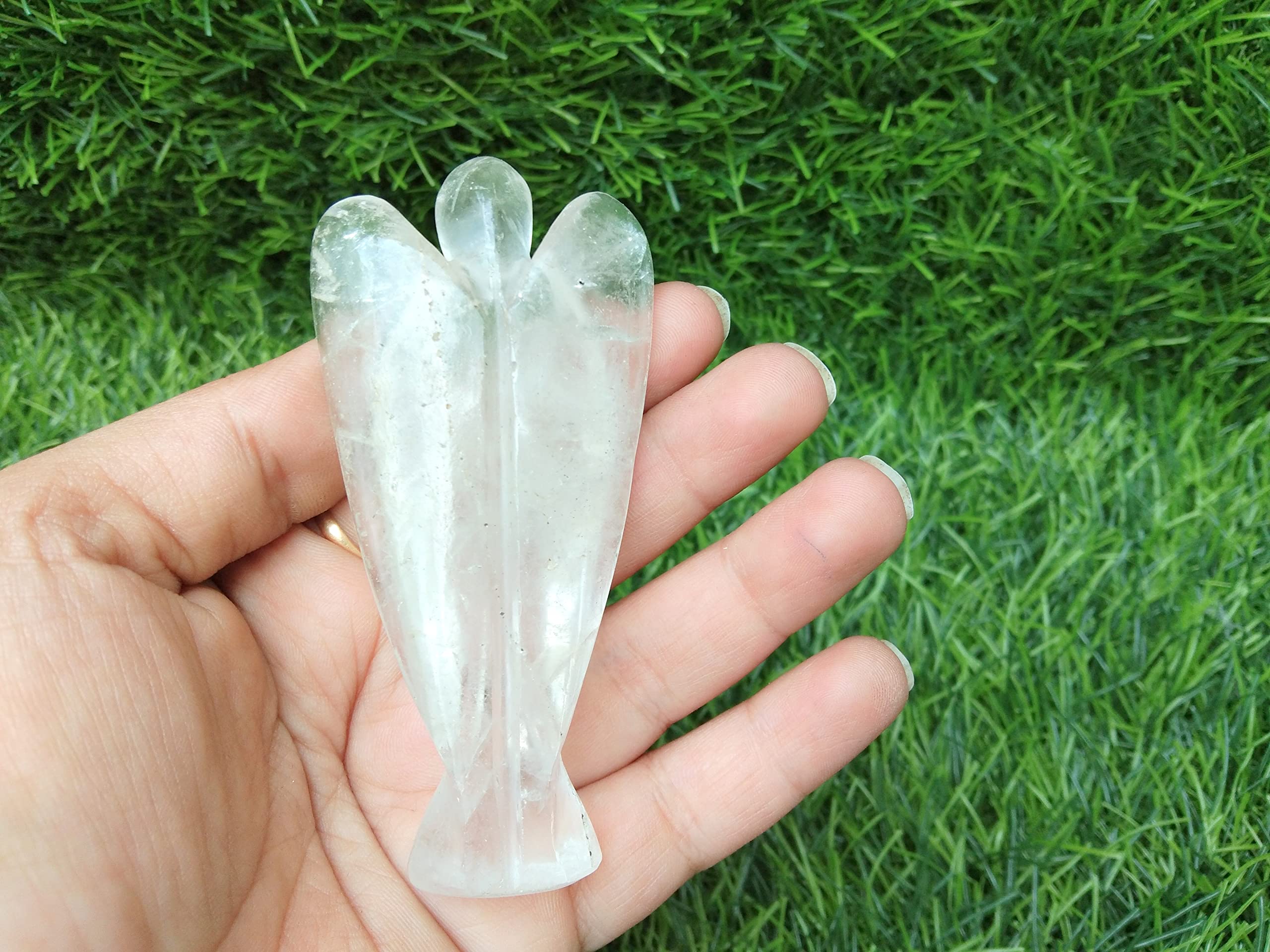 BuyClear Quartz Gemstone Angel | 3-inch | Natural Gemstone Angel | Home Office Decor