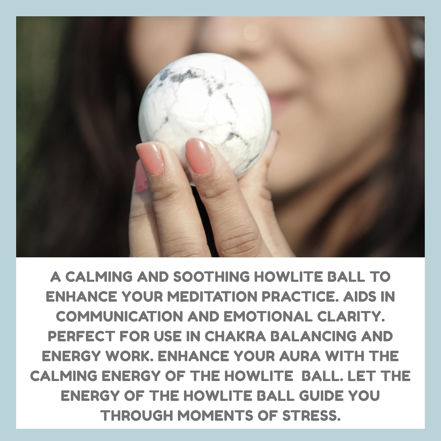 Natural Howlite Crystal Ball (50-55 mm) – Handcrafted from genuine Howlite gemstone, this polished sphere radiates calming energy and makes a beautiful addition to your crystal collection.