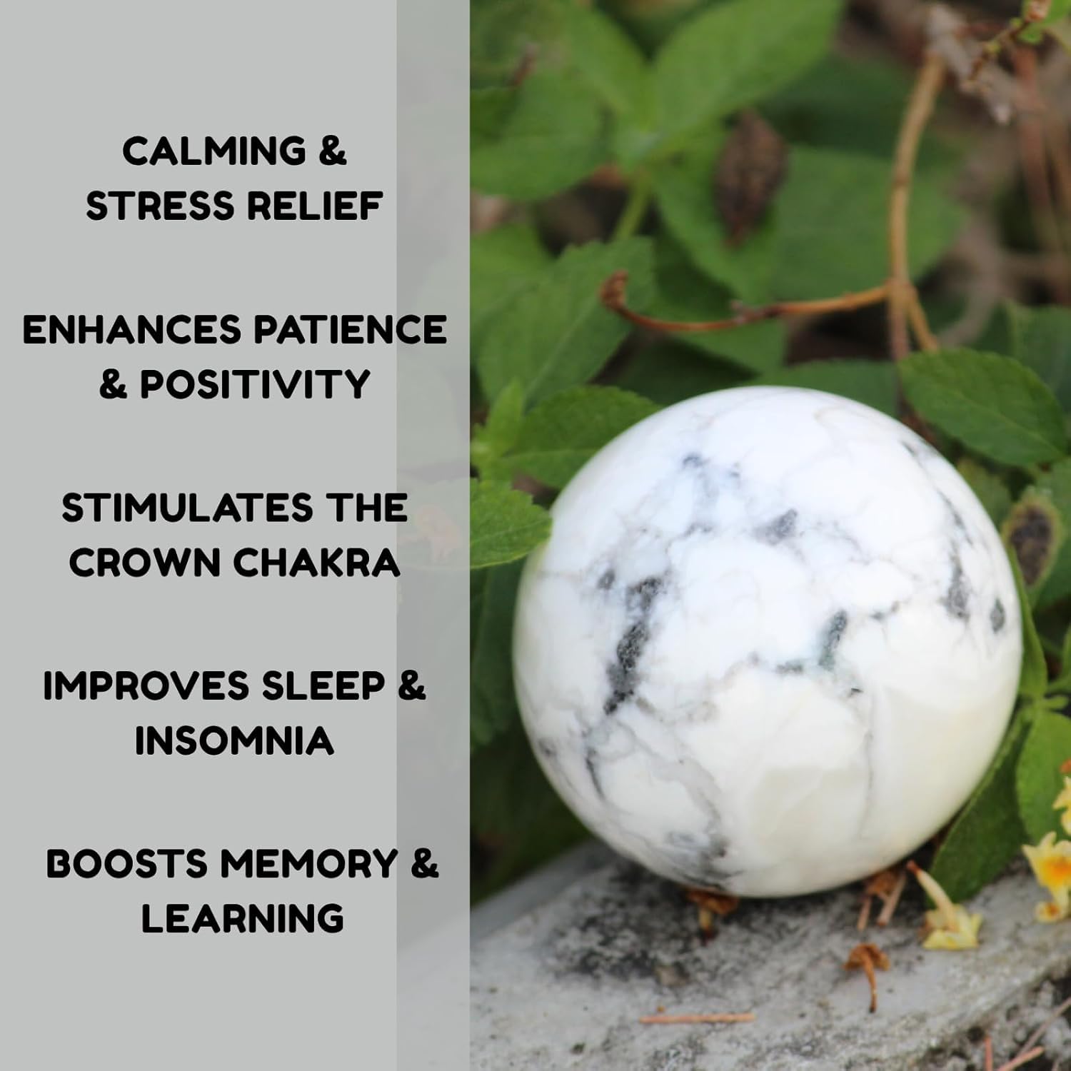 BuyHowlite Gemstone Ball | 50-55mm | Reducing Stress, Anxiety & Anger | Home Office Decor
