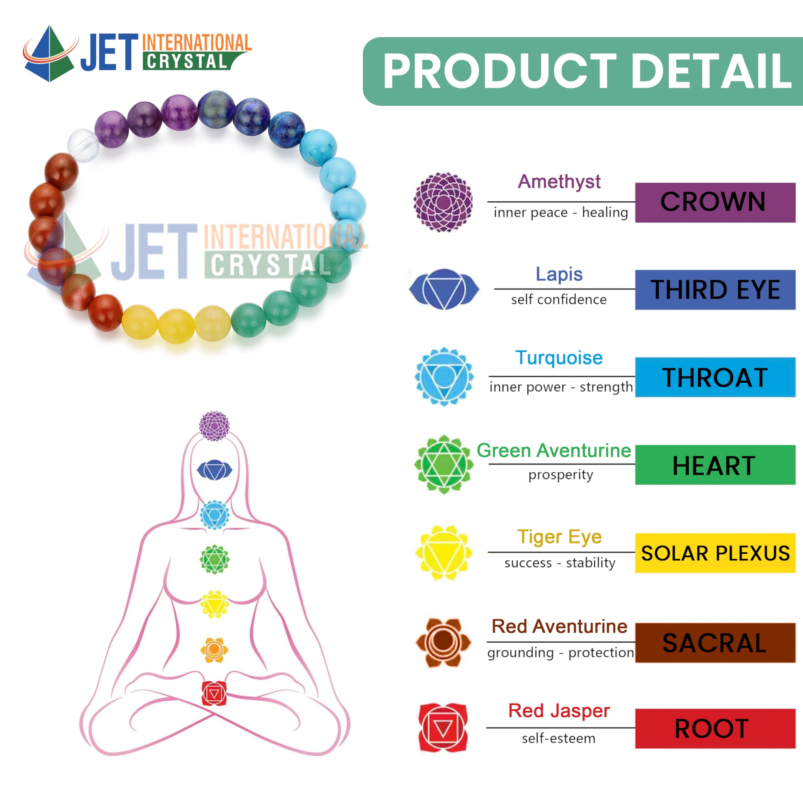 BuyJet 7 Chakra Bracelet | Spiritual Healing & Balance | Positive Energy