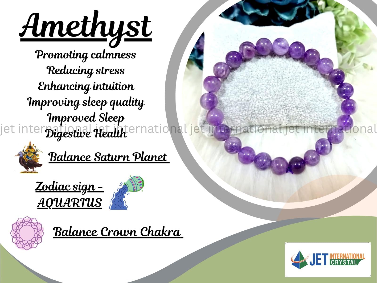 BuyJet Amethyst Bracelet | 8mm Beads | Mental Clarity | Spiritual Protection