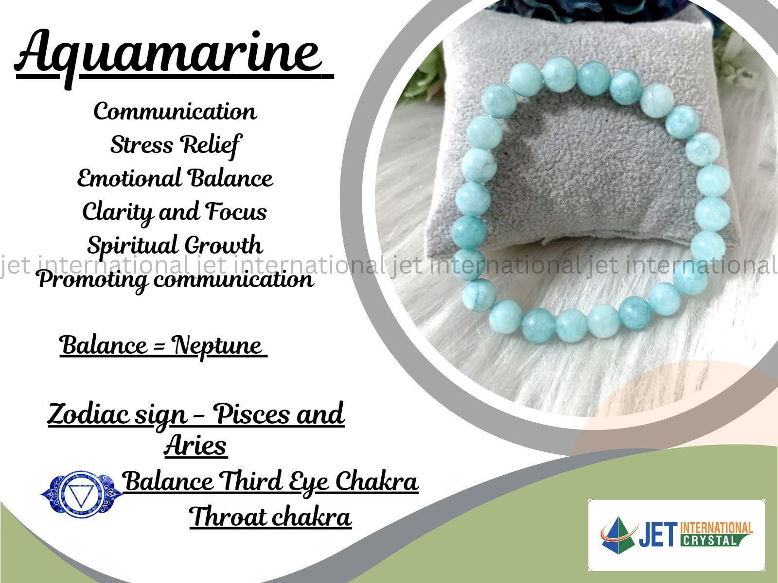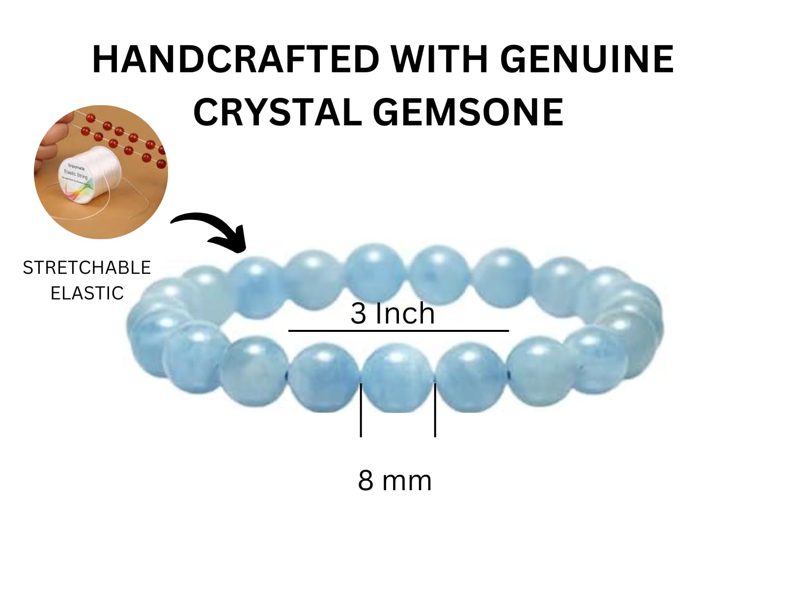 BuyJet Aquamarine Bracelet | 8mm Breads | Healing | Strength Prosperity