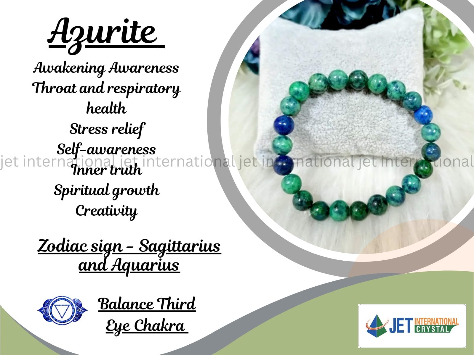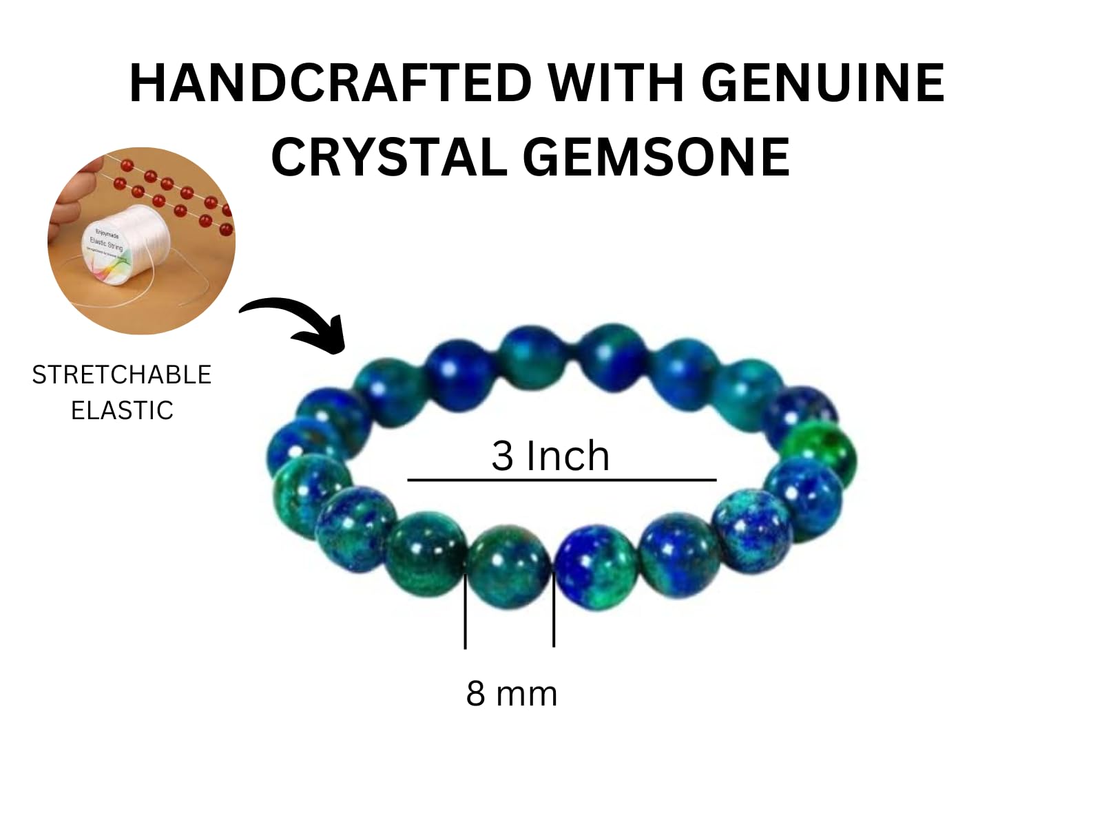 BuyJet Azurite Bracelet | 8mm Beads | Releases stress | Jupiter Balancing