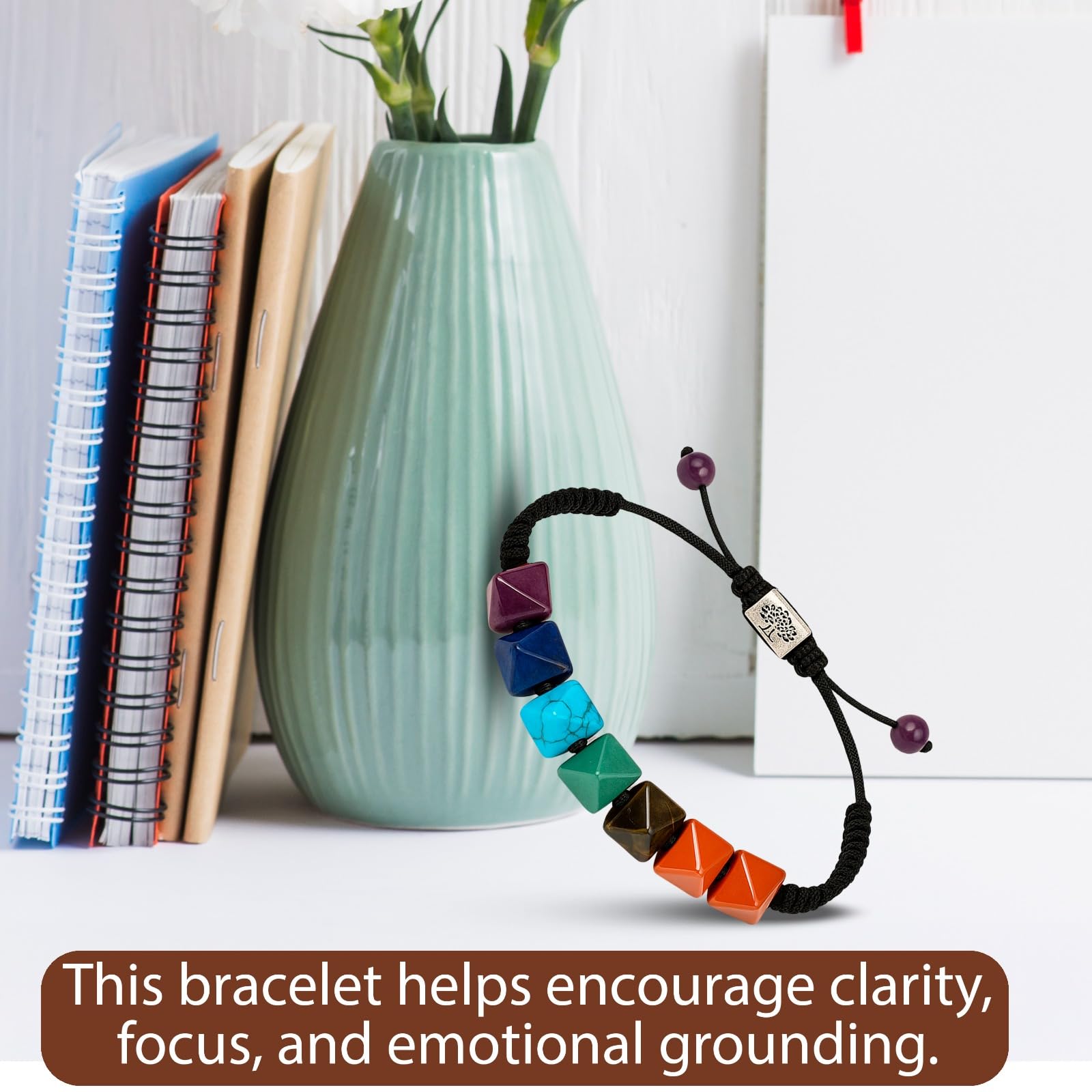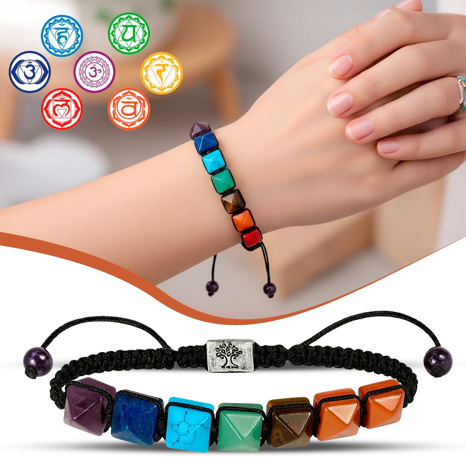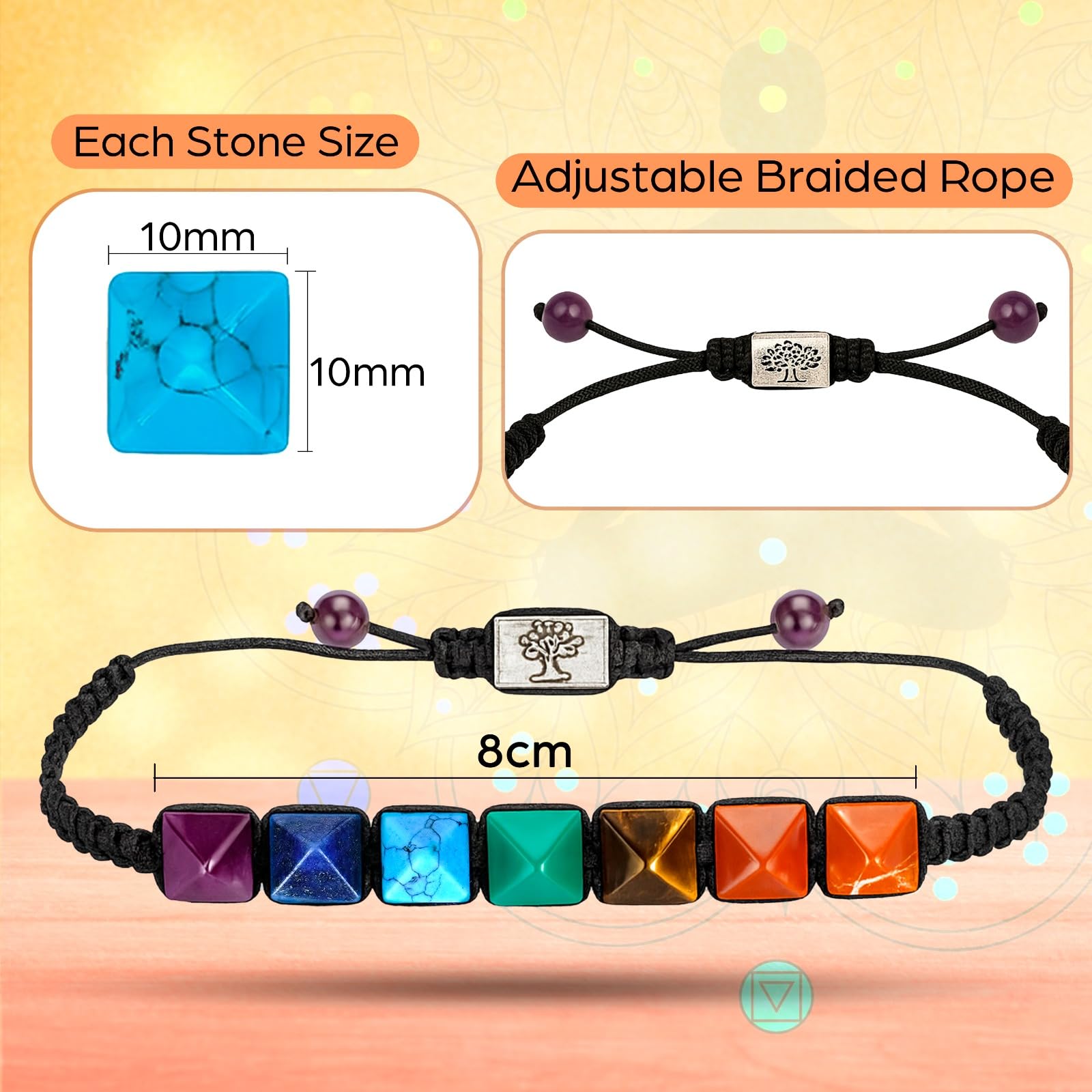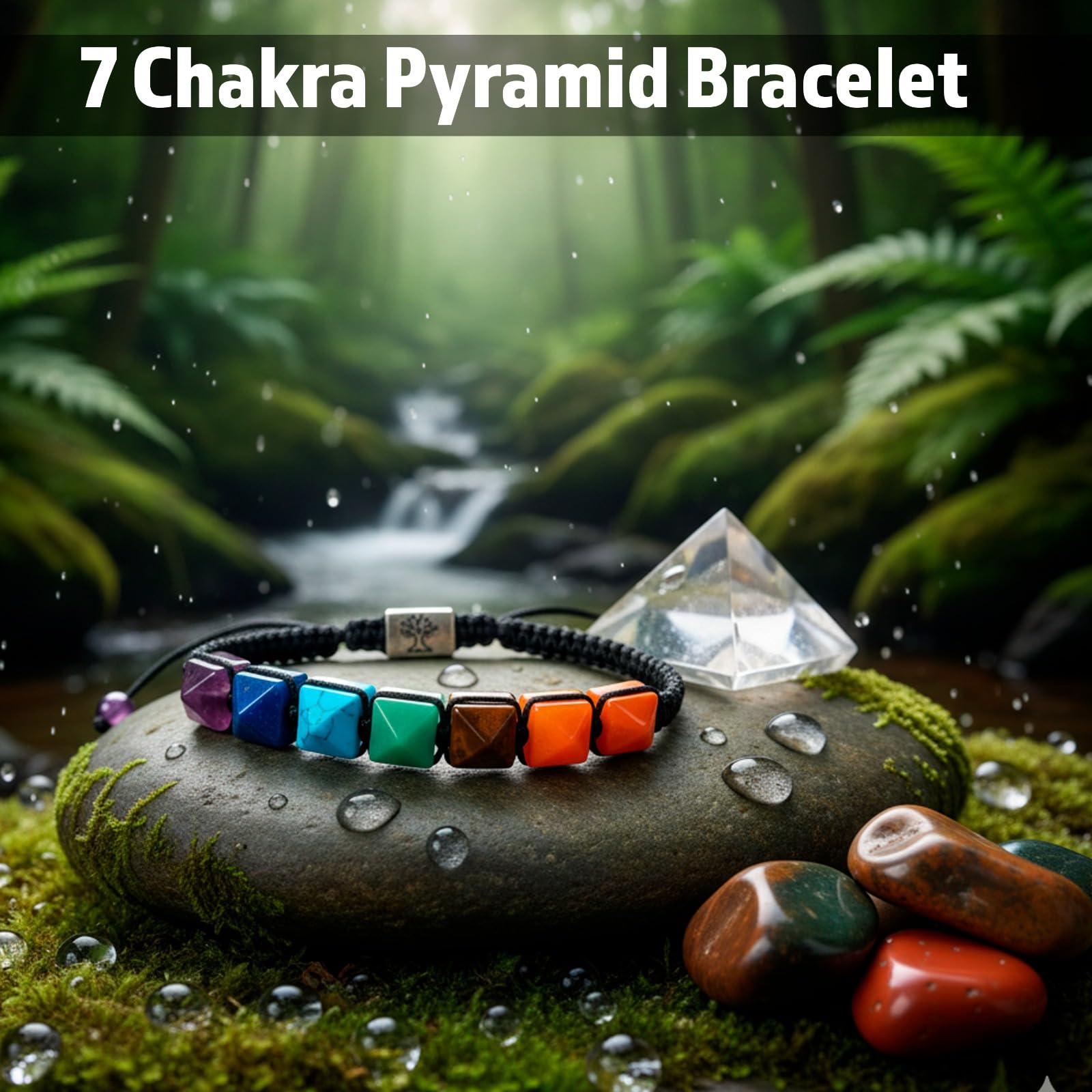 This bracelet harmonizes all seven chakras using pyramid-shaped crystals that enhance energy flow, emotional stability, and spiritual alignment. Ideal for meditation, healing rituals, and improving overall well-being through balanced and vibrant chakra energy.