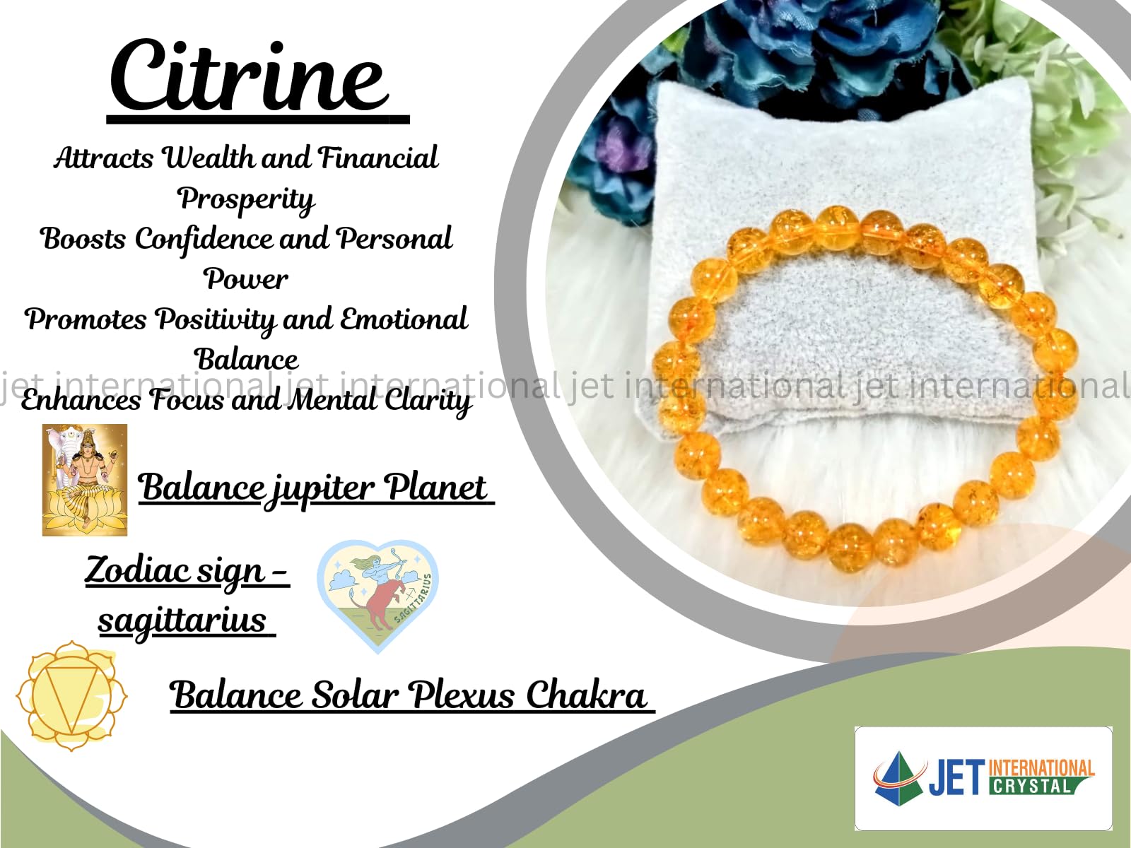BuyJet Citrine Bracelet | 8mm Beads | Wealth Attraction | Confidence Boost