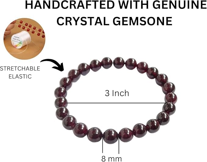 BuyJet Garnet Bracelet | 8mm Beads | self-confidence | Increase strength