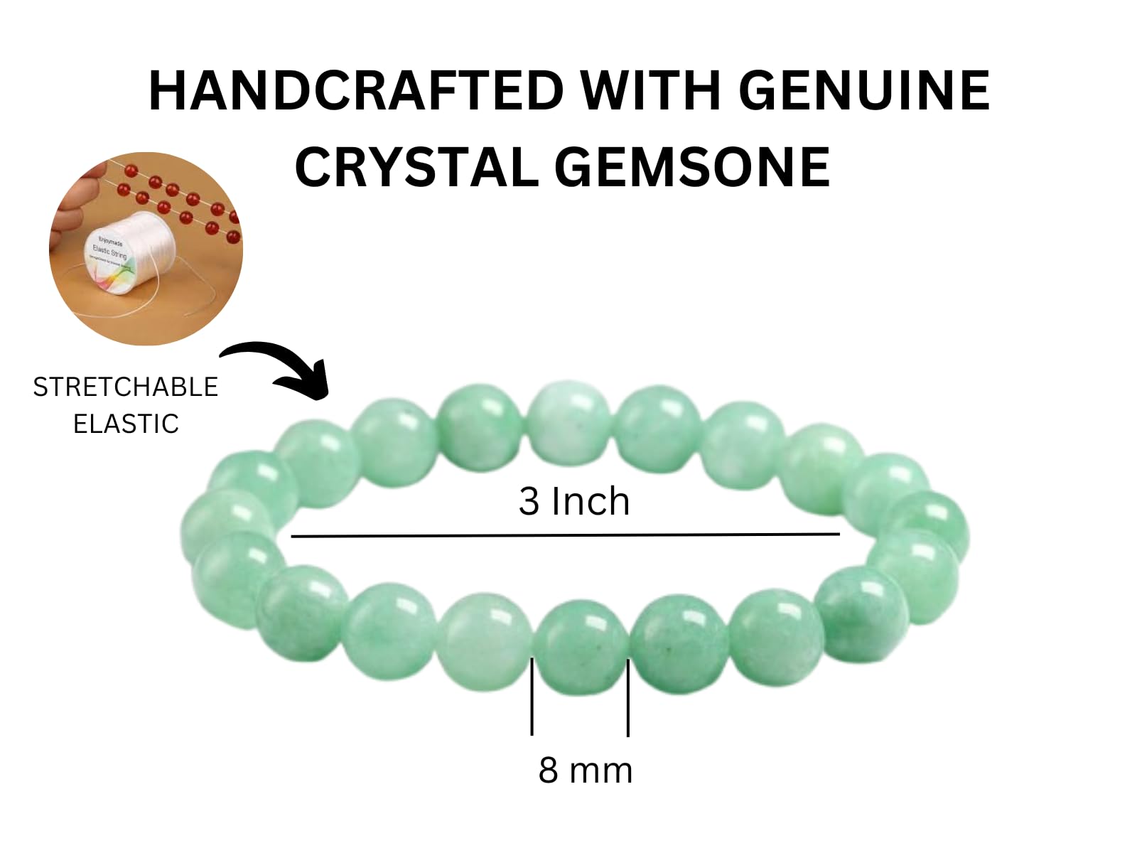 BuyJet Green aventurine Bracelet | 8mm Beads | Good Luck | Heart Healing