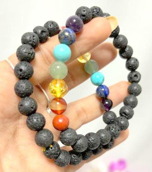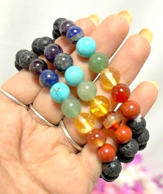 BuyJet Lava Beads Chakra Bracelet | 8mm Beads | Energy Balance | Stress Relief | Mars-Sun Balancing
