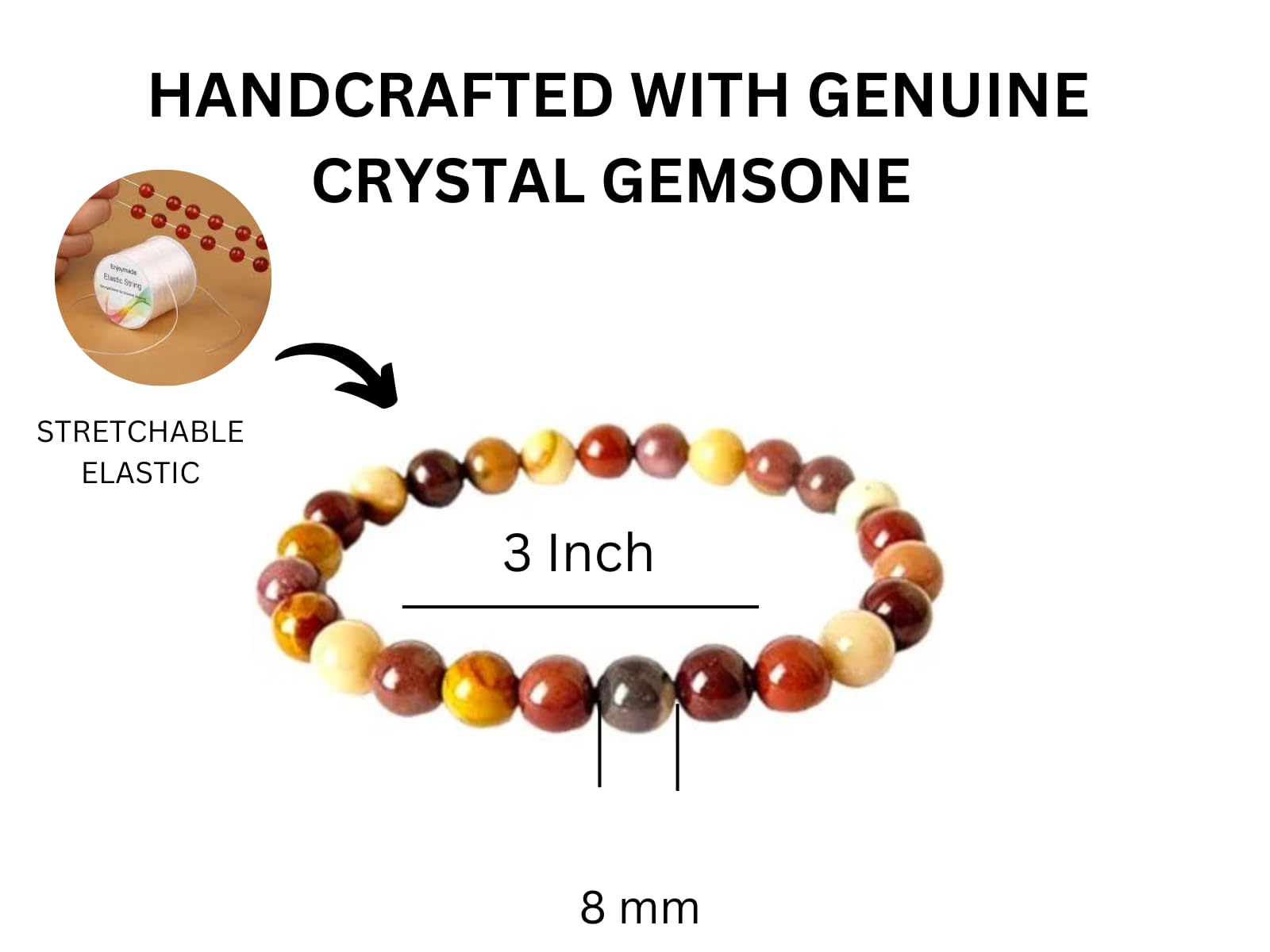 BuyJet Mookaite Bracelet | 8mm Beads | Inner Strength | Grounding Energy