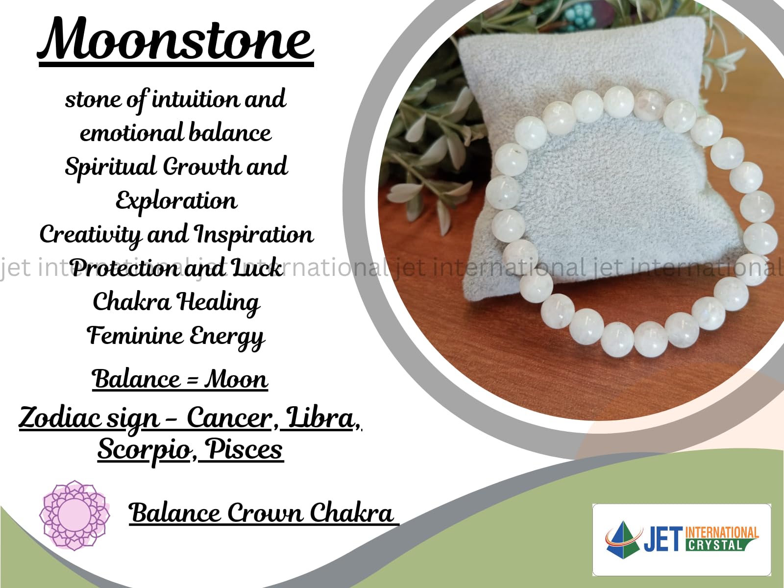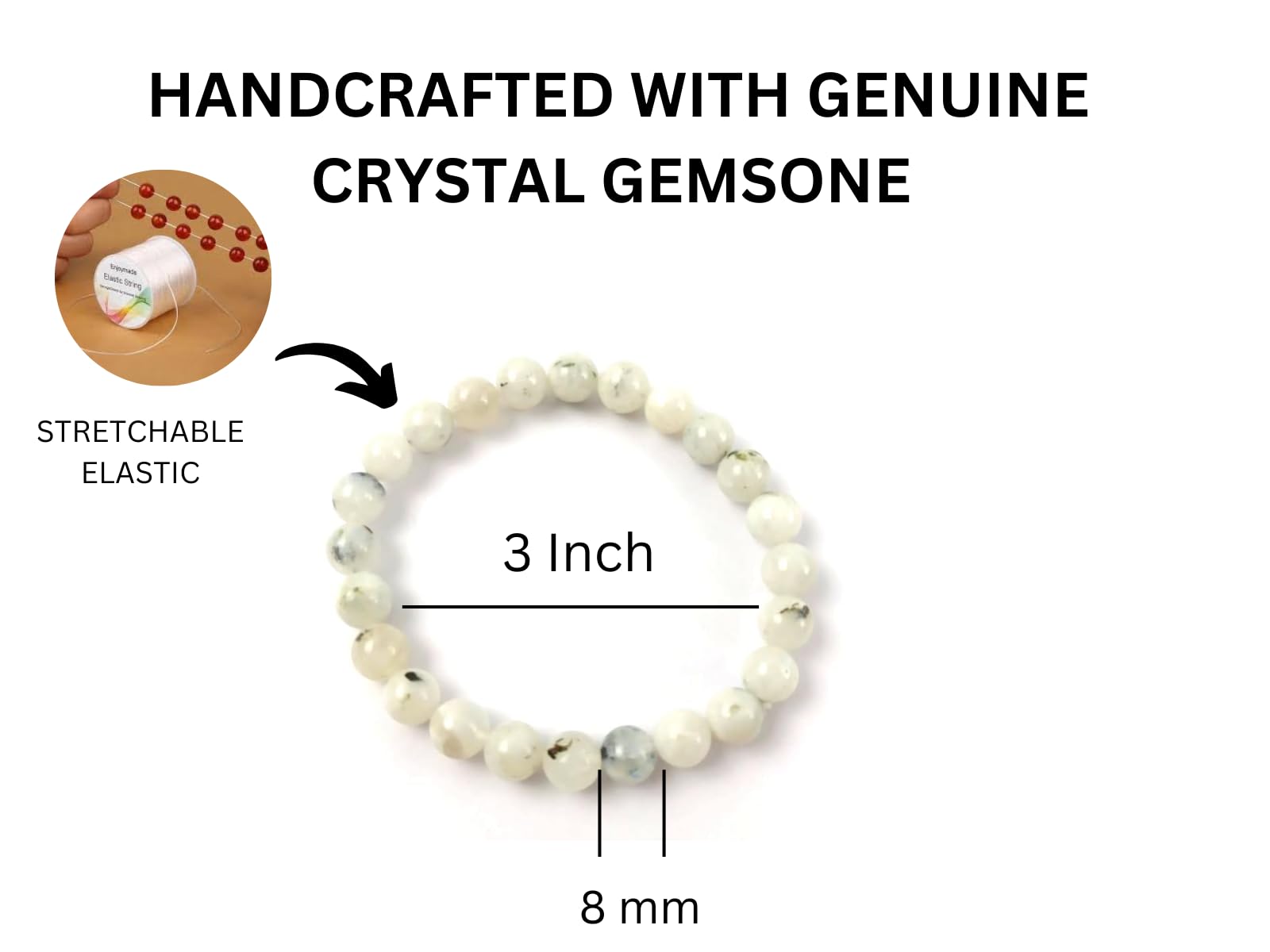 BuyJet Moonstone Bracelet | 8mm Beads | Peace | Stress Relief | Moon Balancing