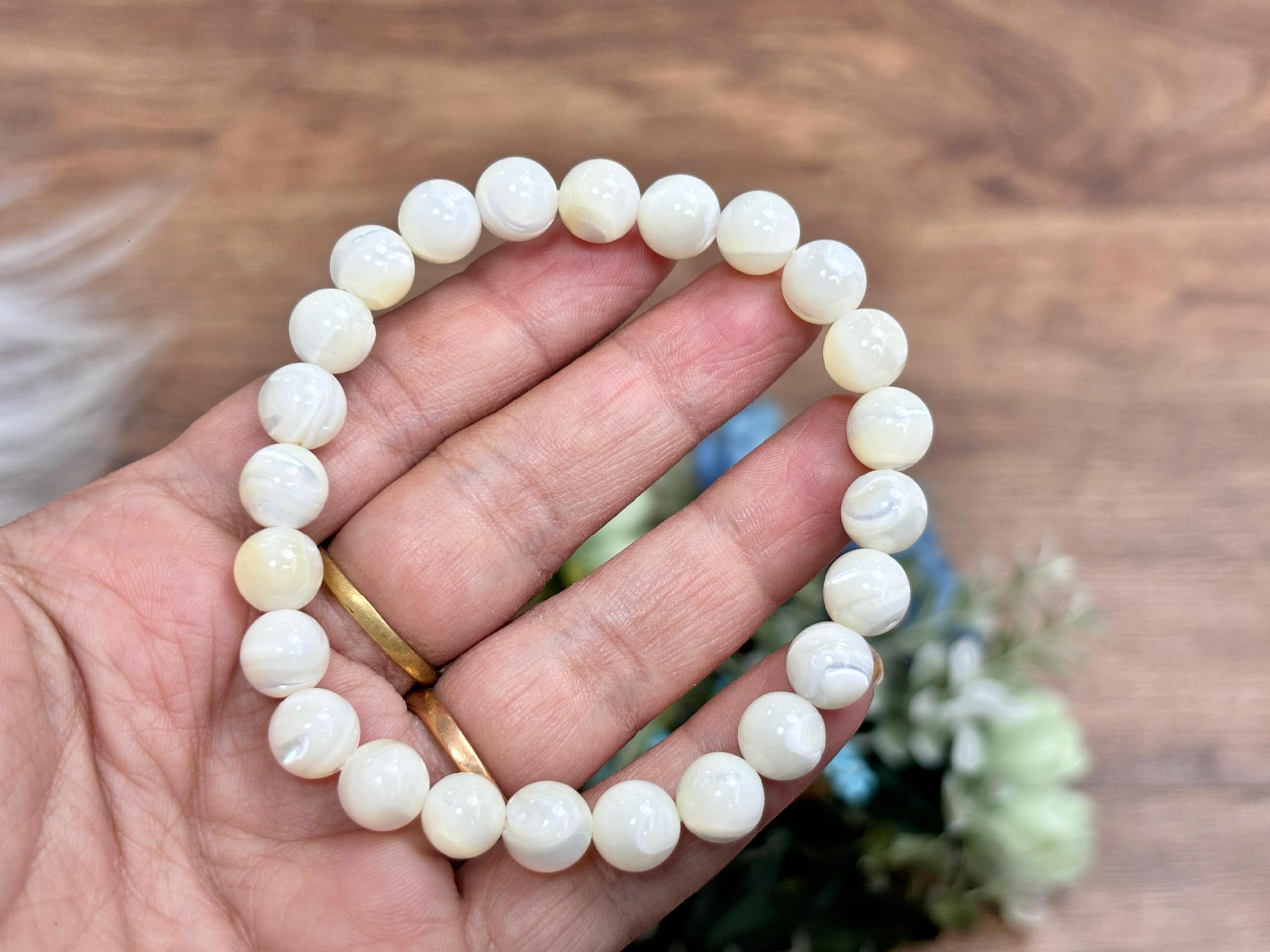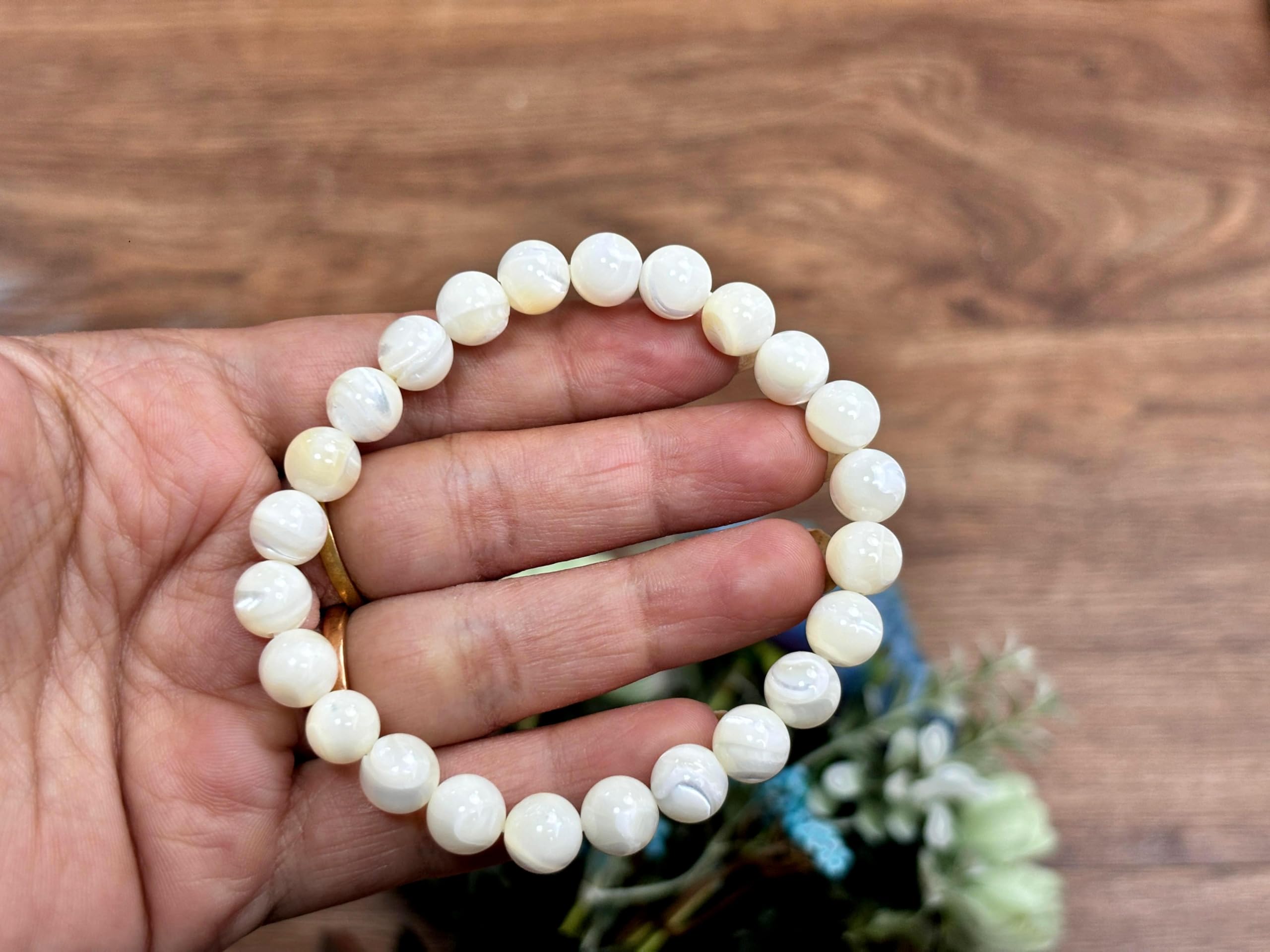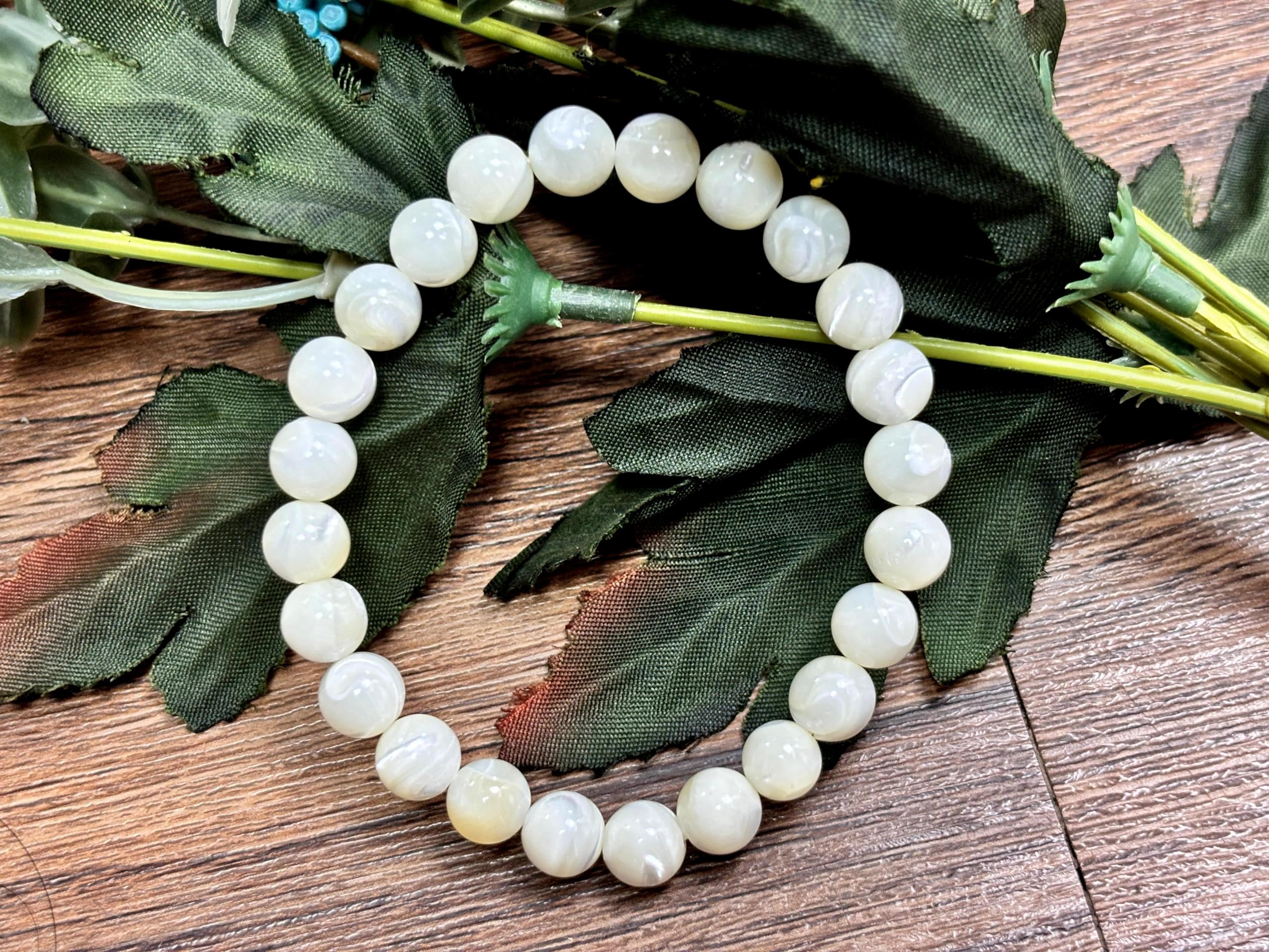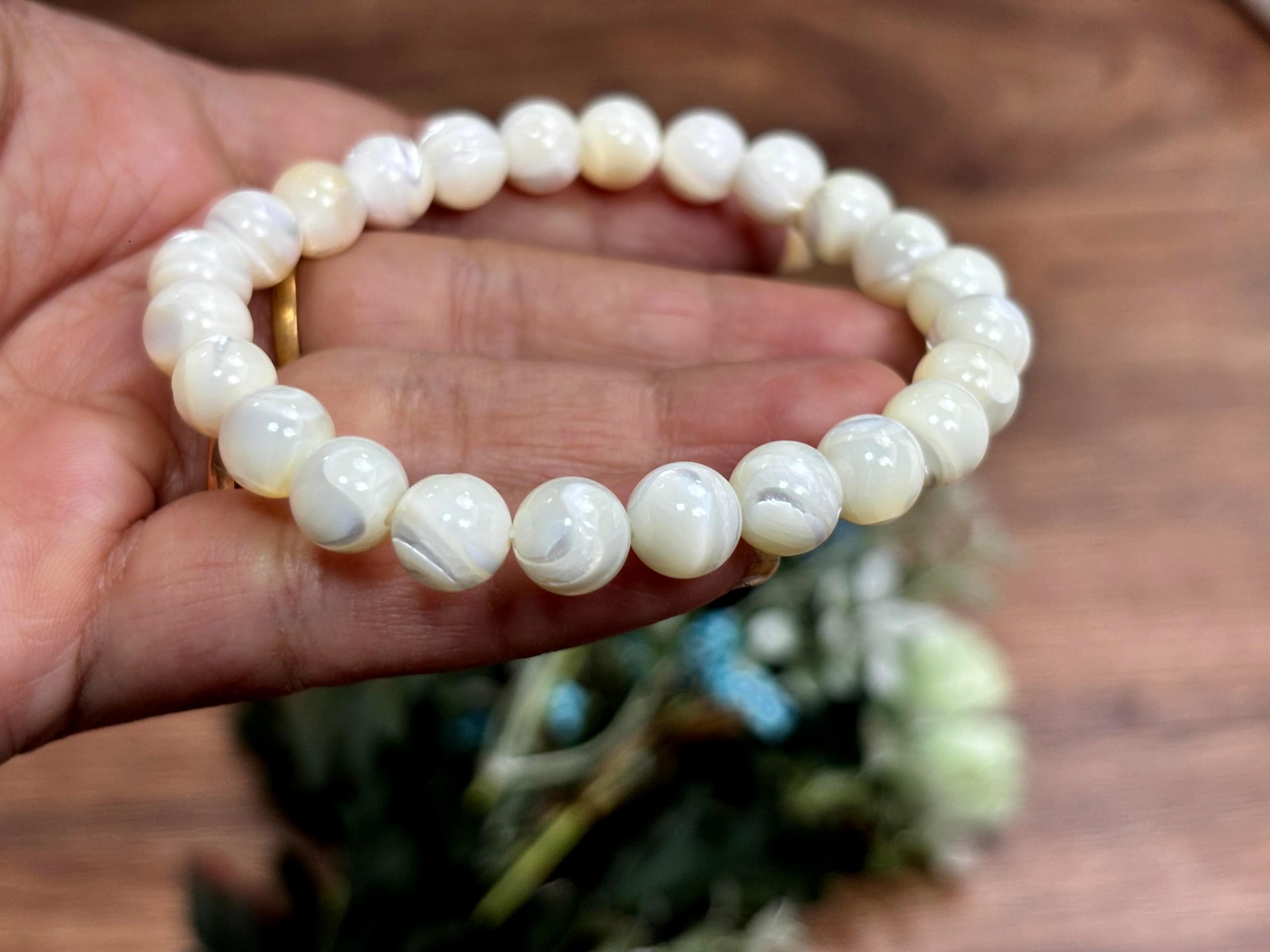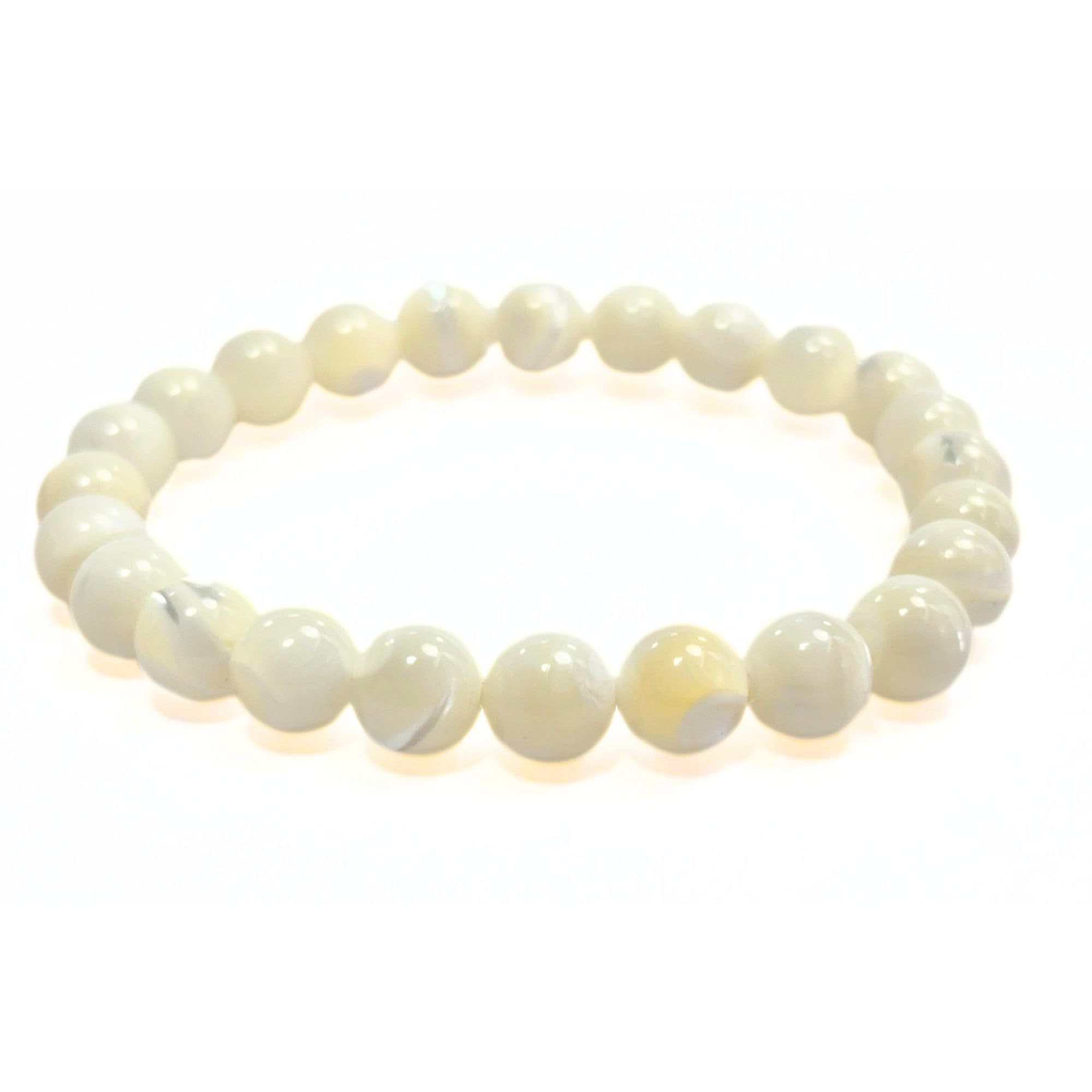 BuyJet Mother Of Pearl Stone Bracelet | 8mm Beads | Calm & Soothing | Confidence Boost