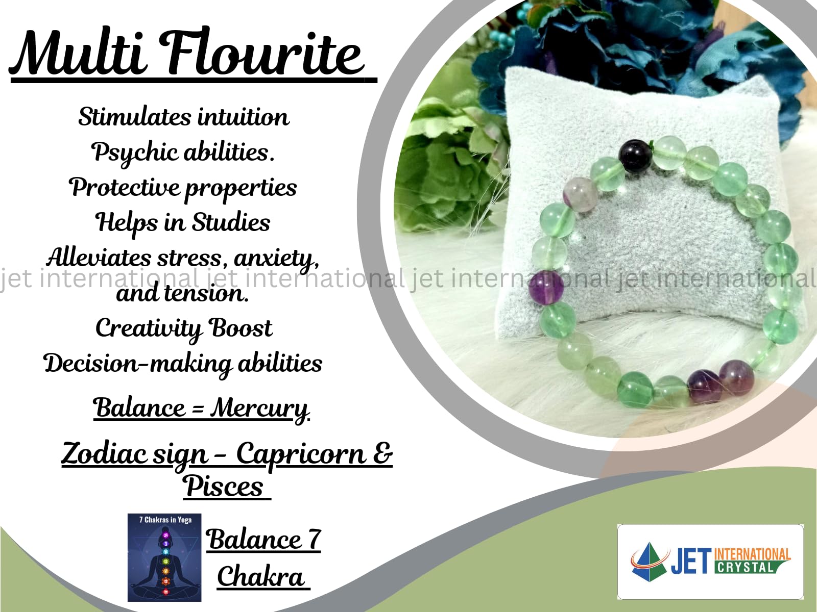BuyJet Multi Flourite Bracelet | 8mm Beads | Helps In Education | Creativity Boost