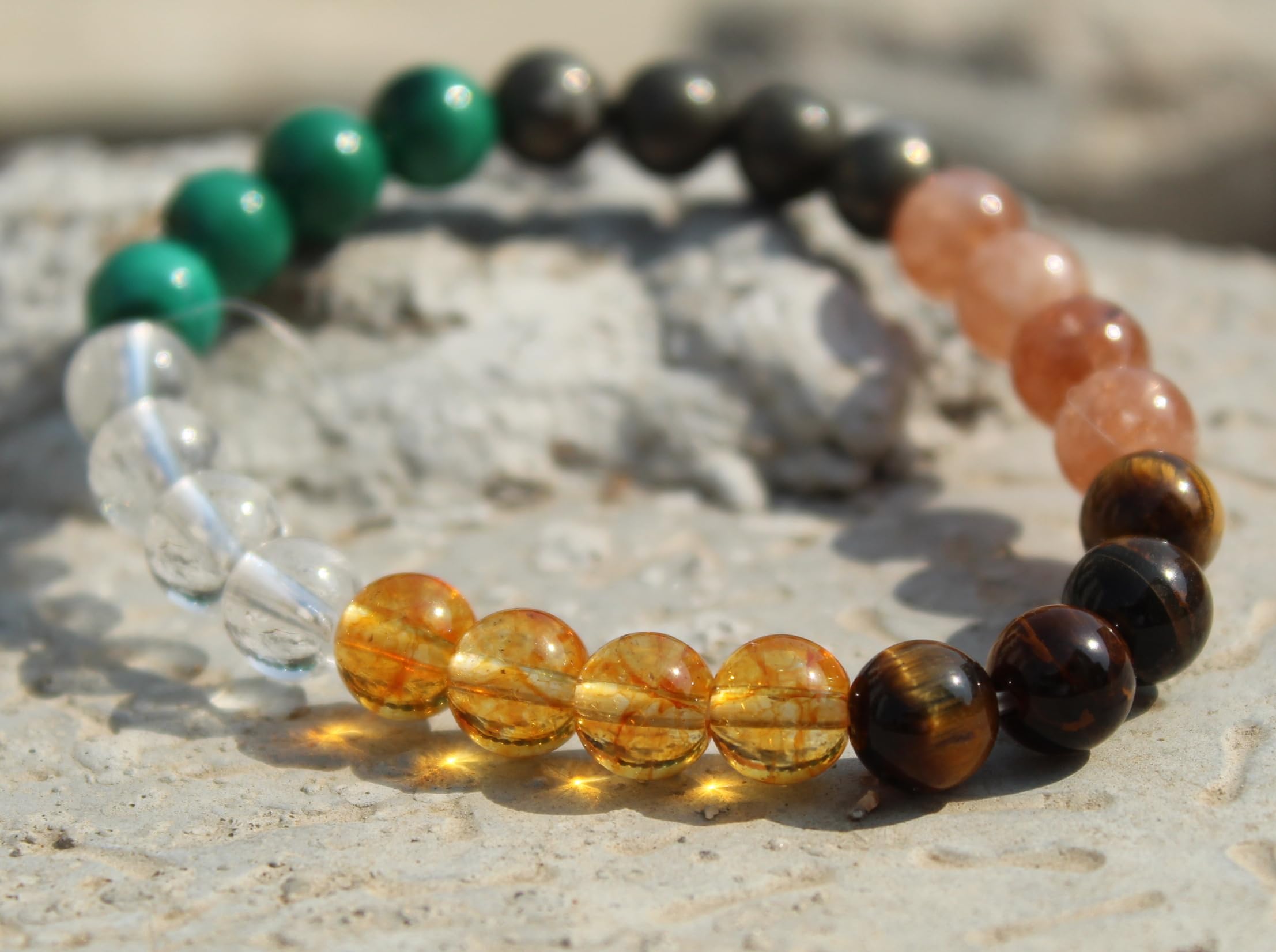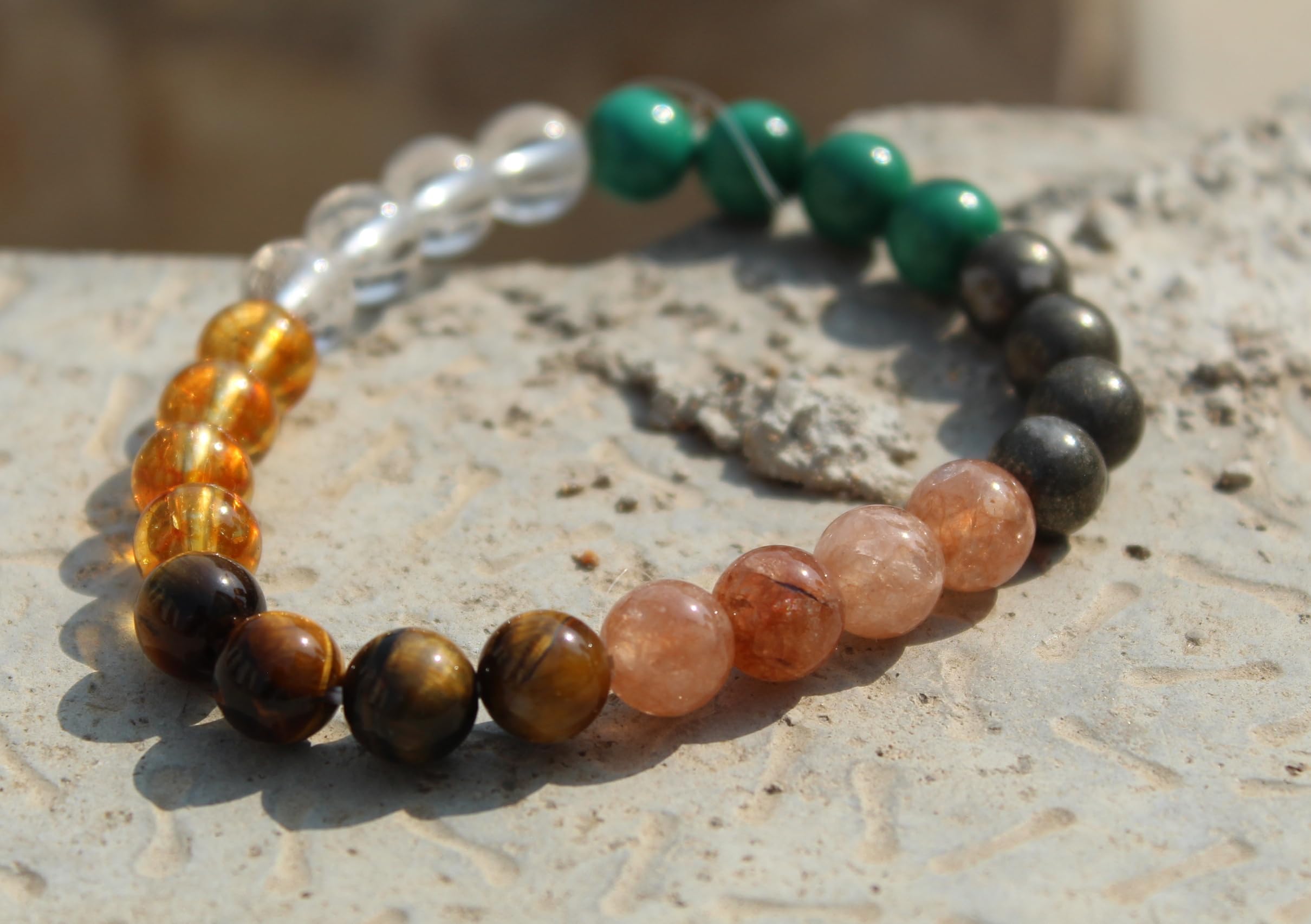 USED STONES: Pyrite, Sunstone Tiger eye, Crystal, Citrine, Malachite