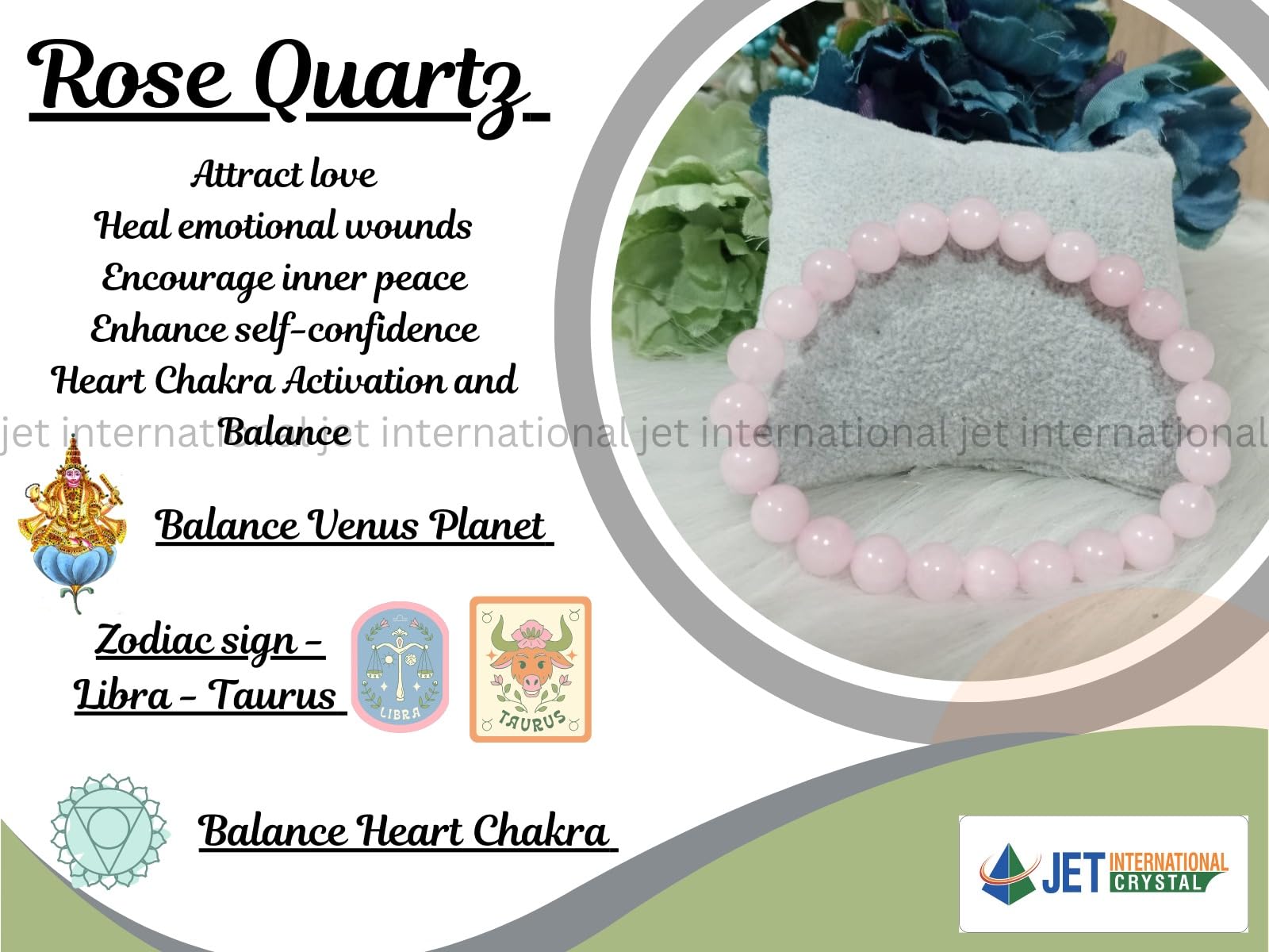 BuyJet Rose Bracelet | 8mm Beads | Unconditional Love | Chakra Balancing