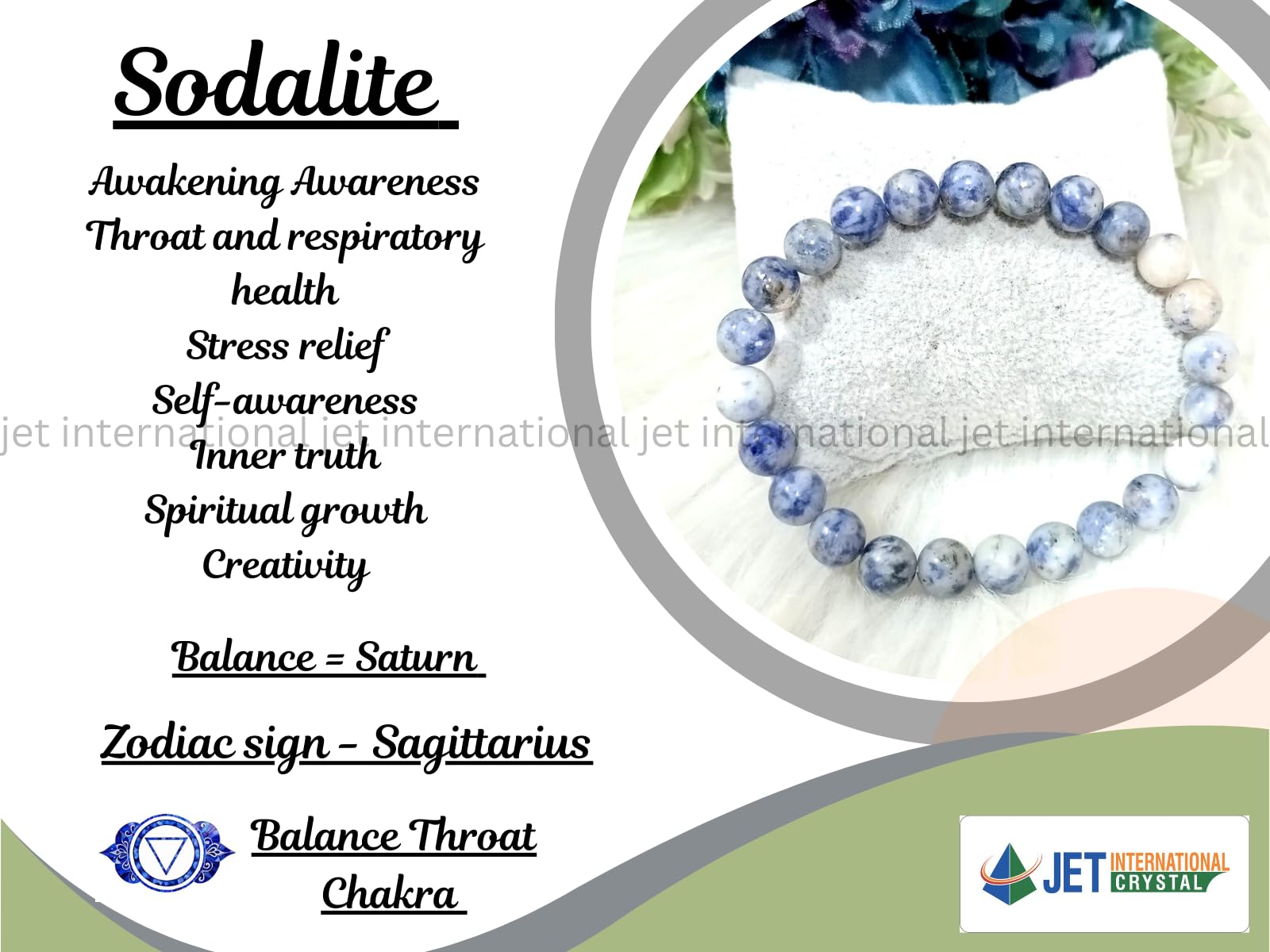 BuyJet Sodalite Bracelet | 8mm Beads | Throat chakra balancing | Awaking awareness