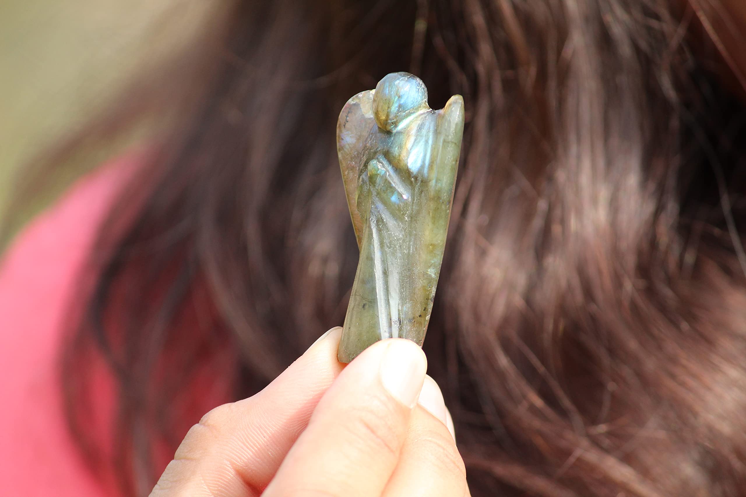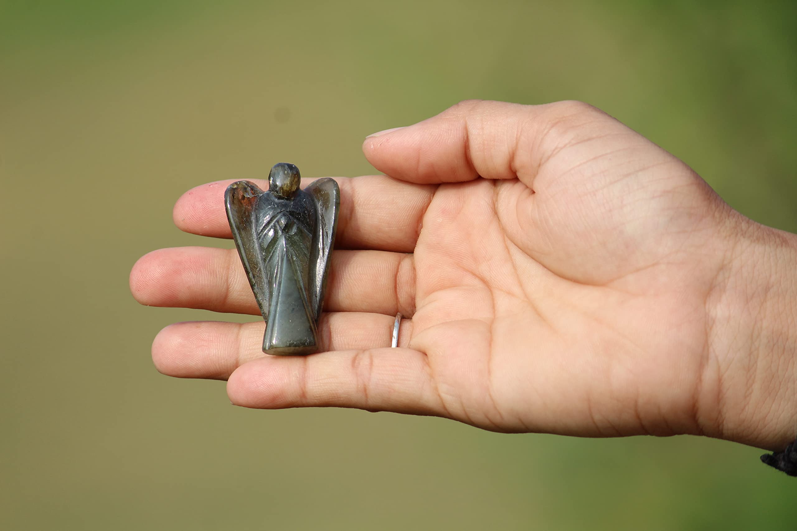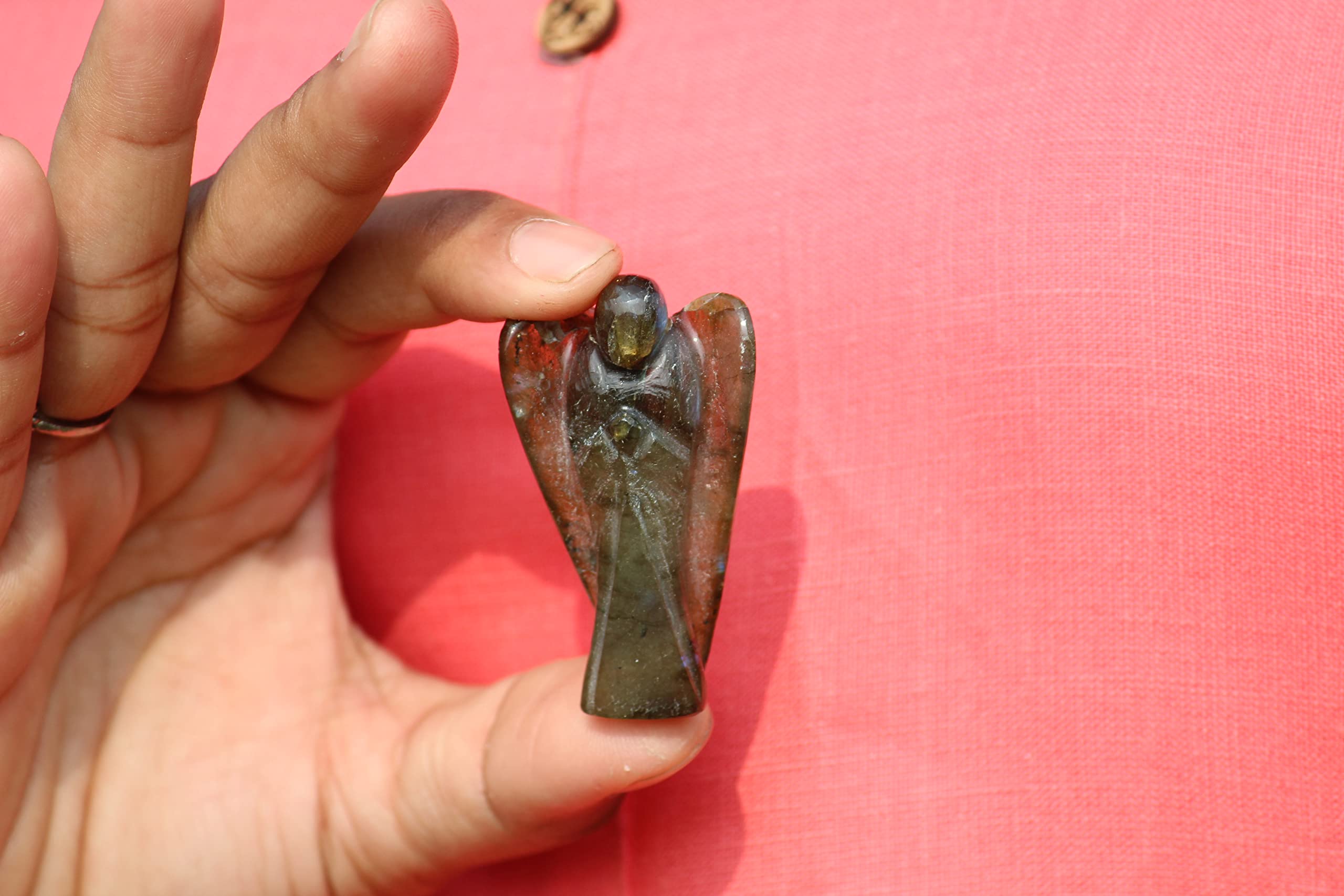 BuyLabradorite Gemstone Angel | 2-inch | Carved Pocket Crystal Guardian Angel | Natural Crystal Angel | Office Decor