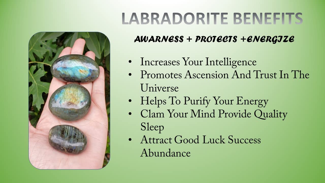 Labradorite dispels negative energy, insecurity and fear, and enhances self-confidence. It is one of the most effective stones in treating anxiety, and amplifies a sense of calmness in the user or wearer.