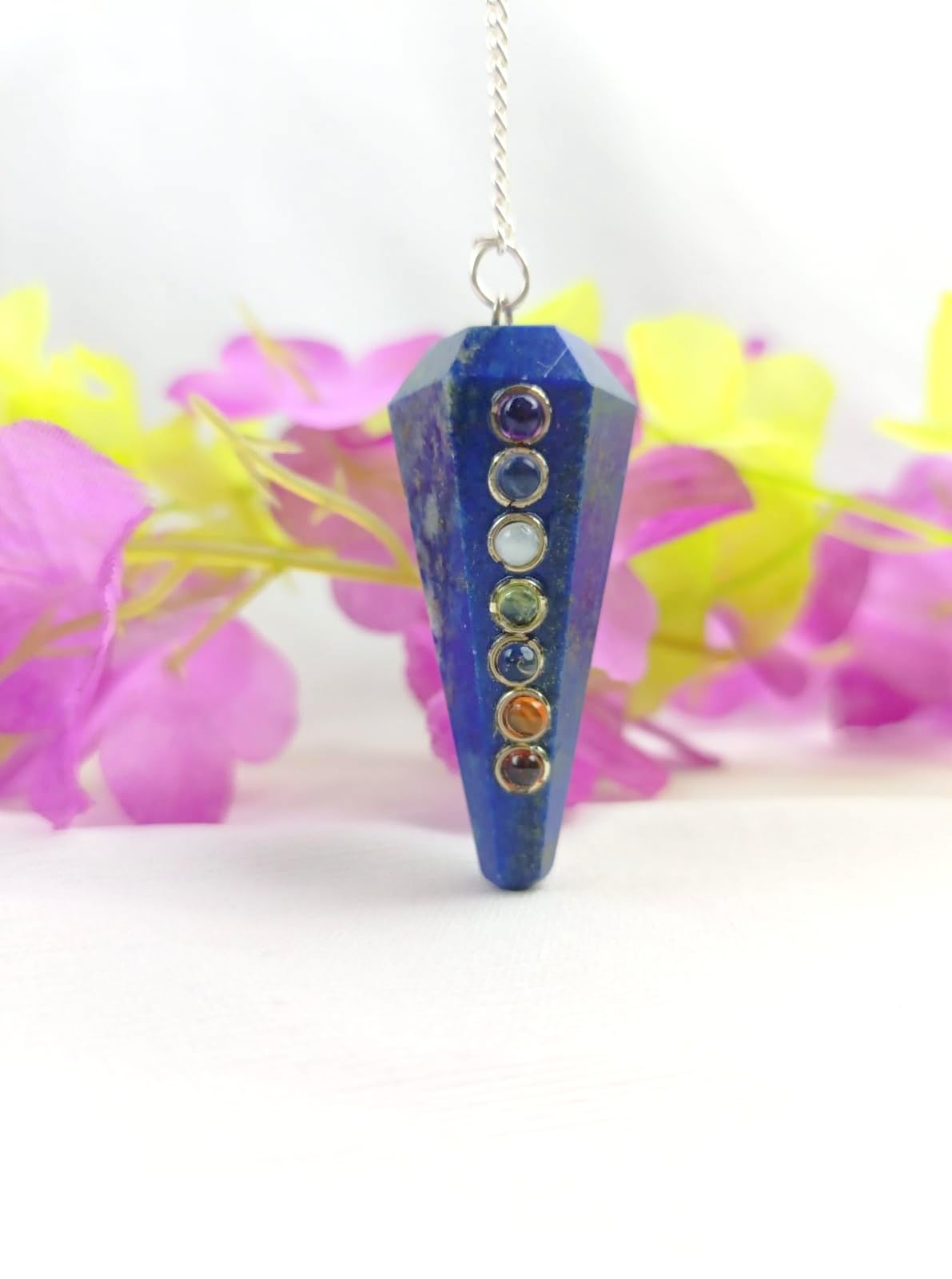 BuyLapis Lazuli Chakra Faceted Cone Shaped Pendulum | Spiritual Healing | Grounding Energy | Natural | Stone Pendulum