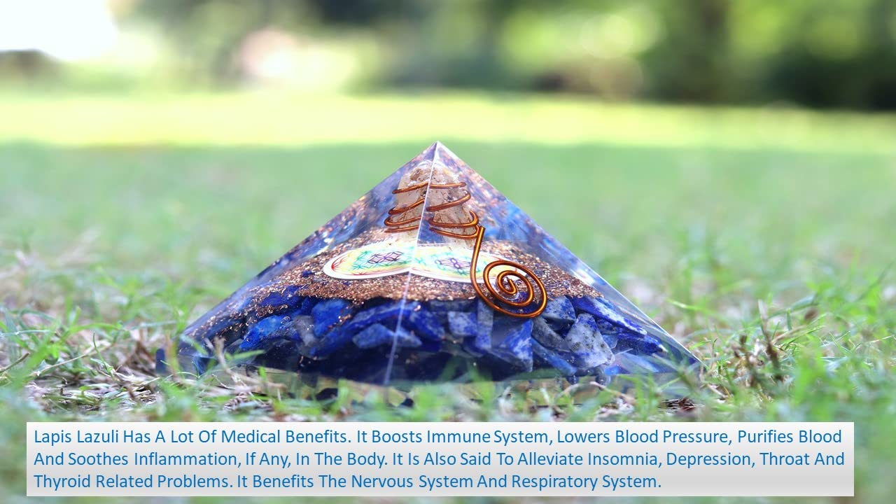 BuyLapis Lazuli Flower of Life Chakra Orgone Pyramid | Focus Wisdom & Truth | Handmade | Home Office Decor