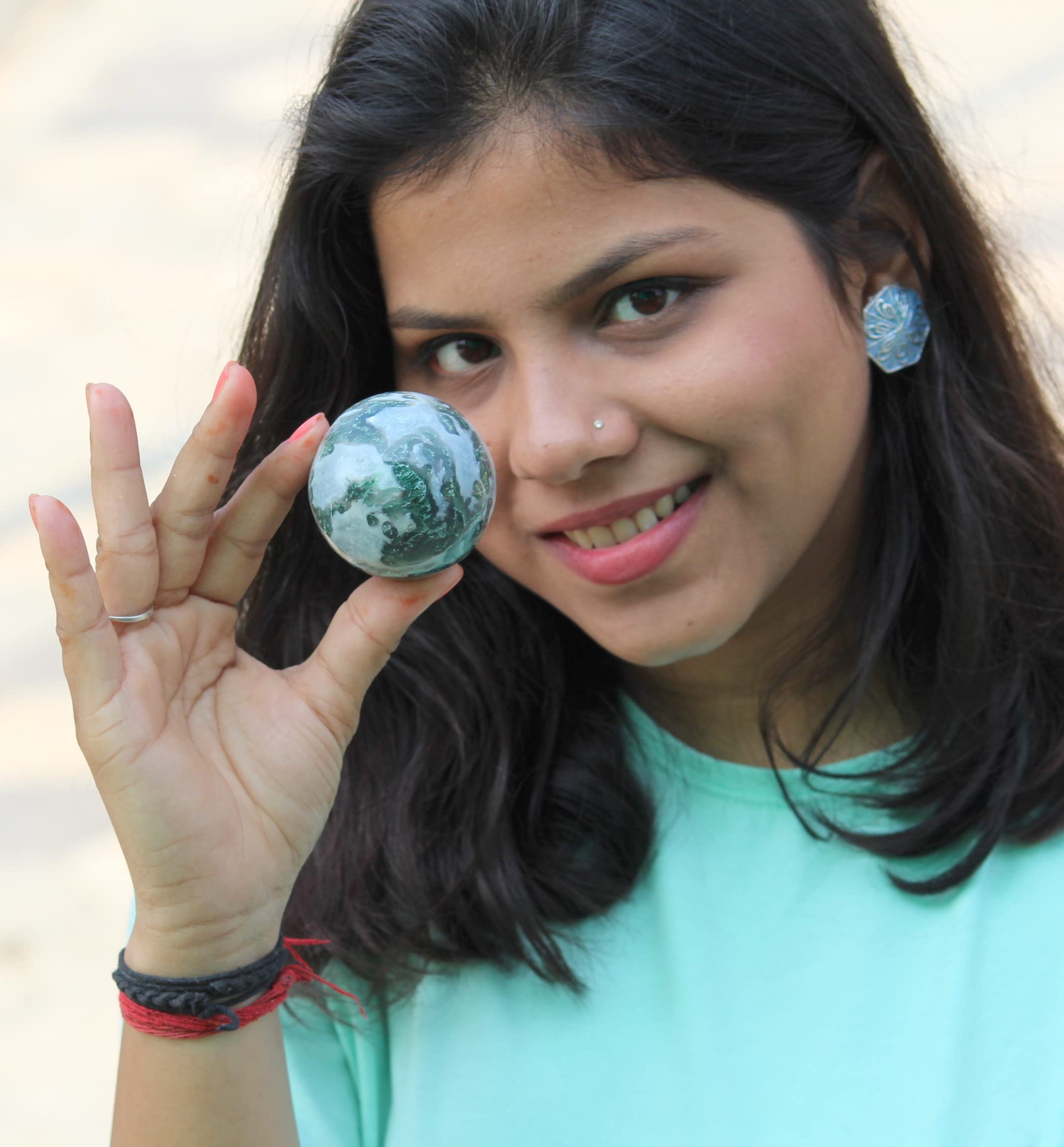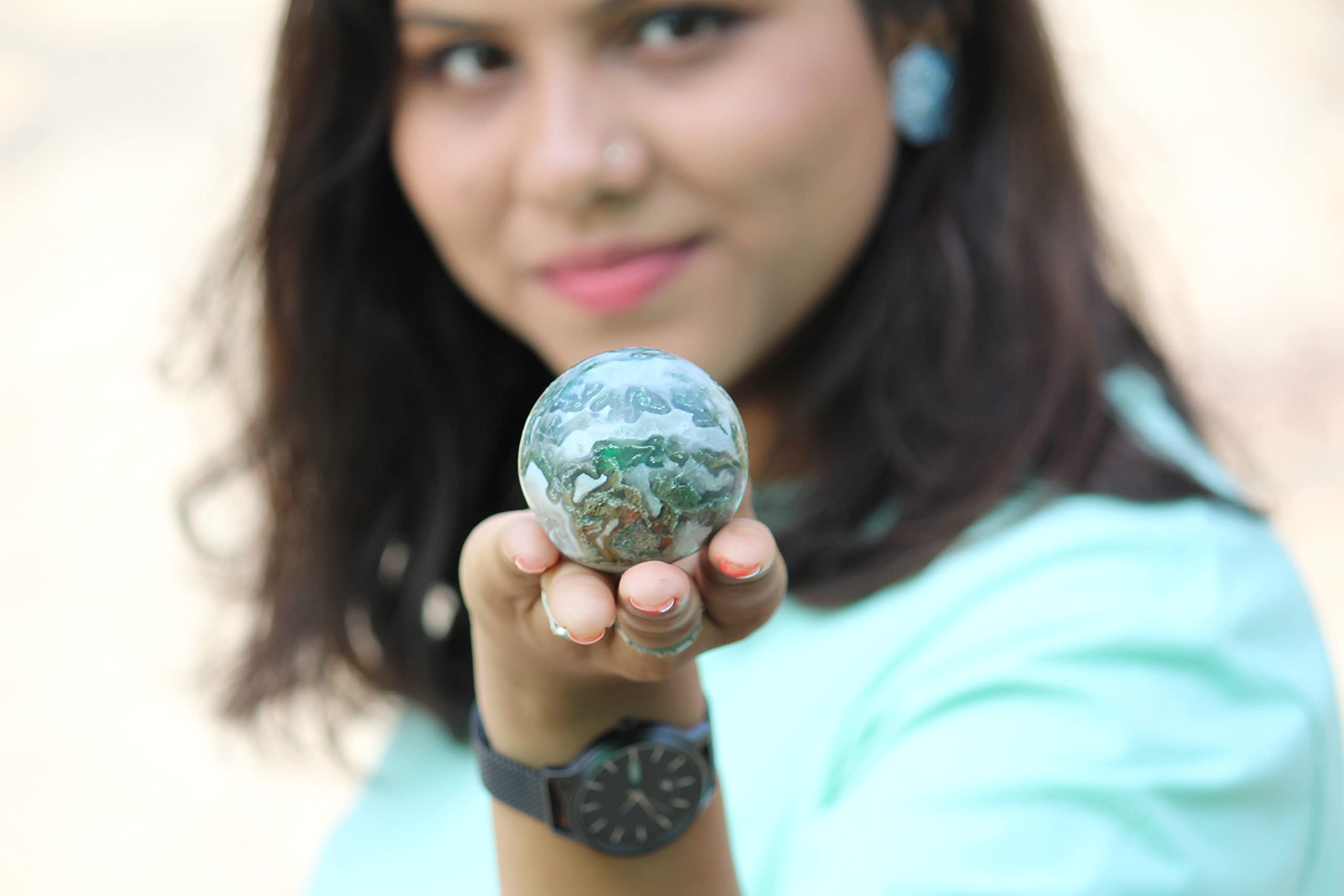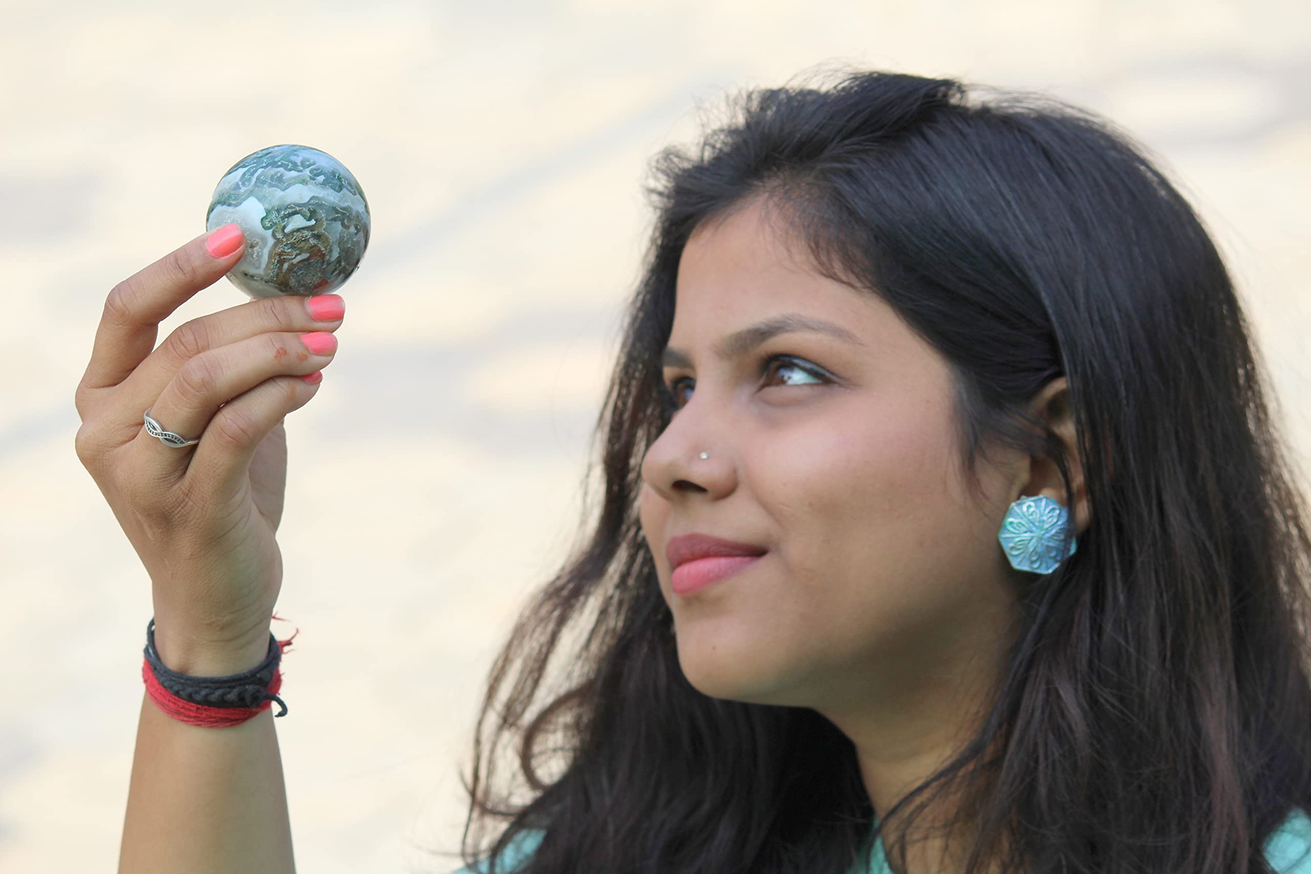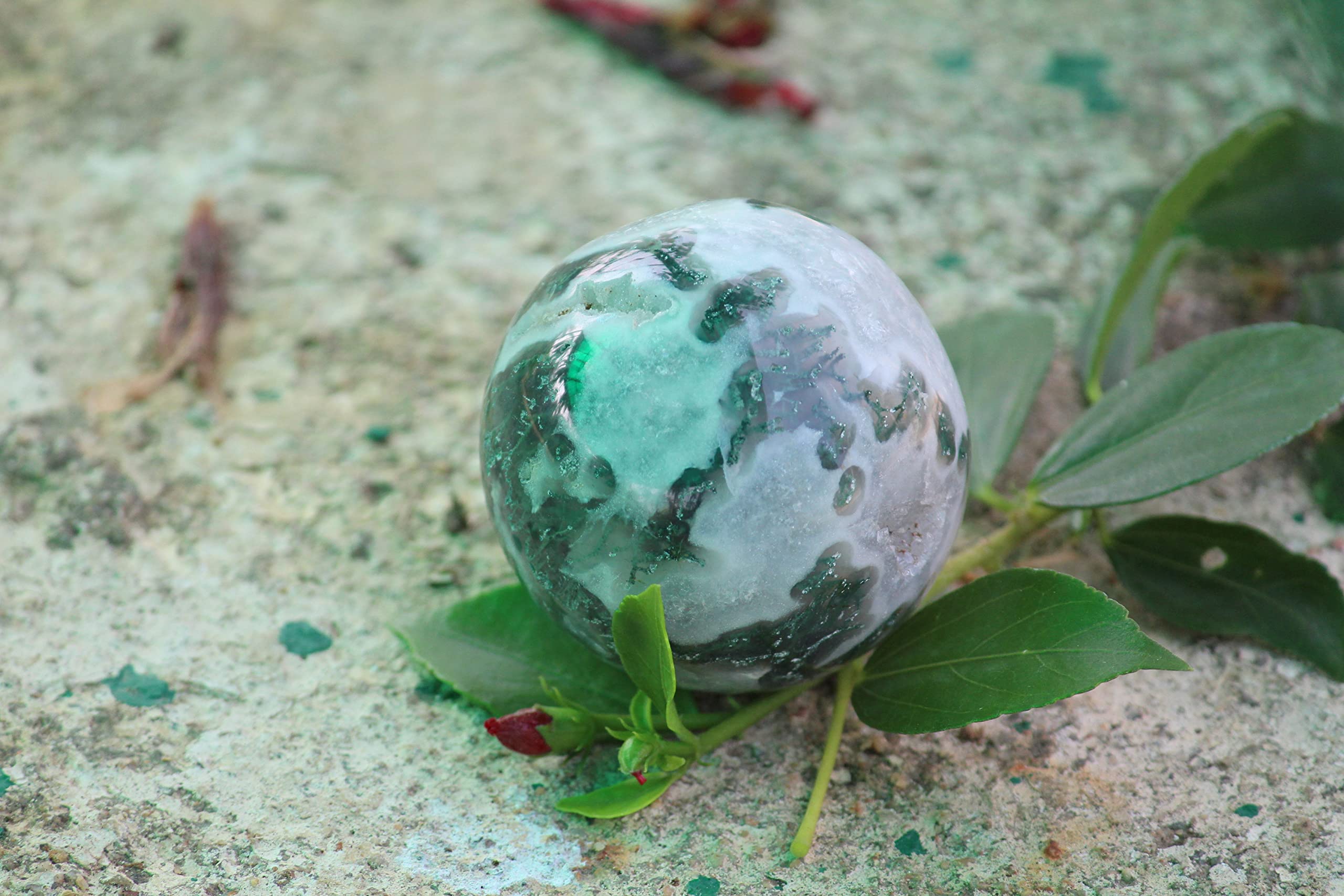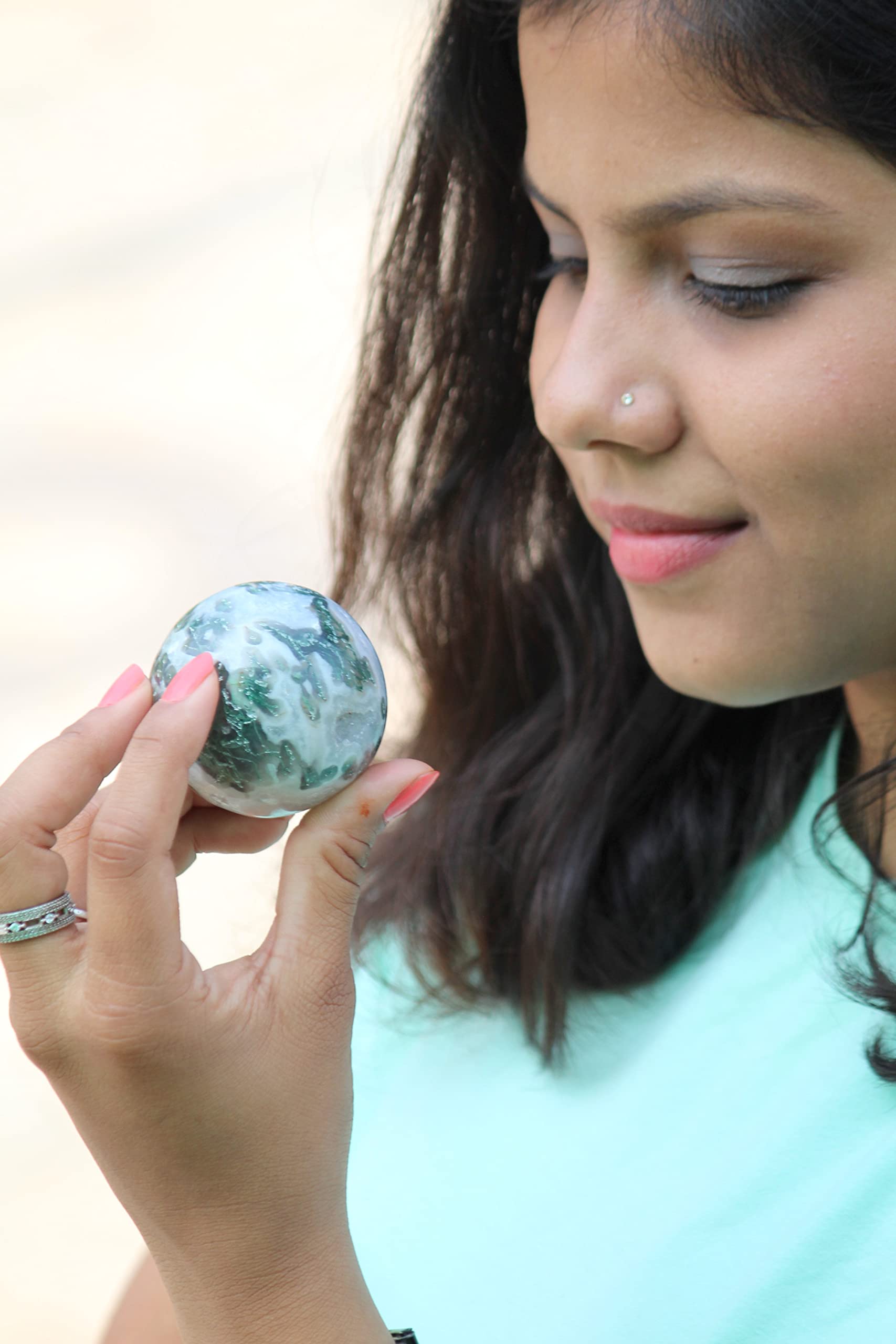 BuyMoss Agate Gemstone Ball | 50-55mm | Abundance & Grounding | Home Office Decor