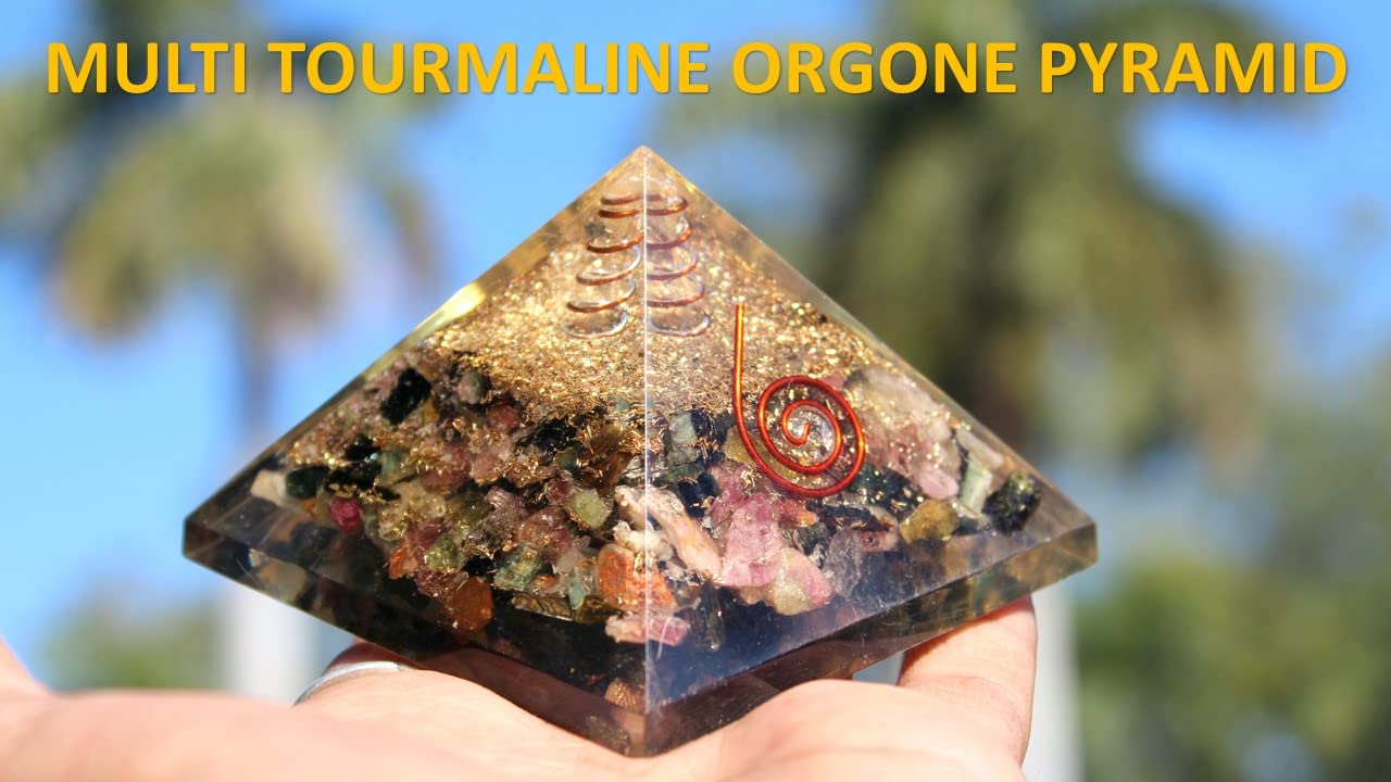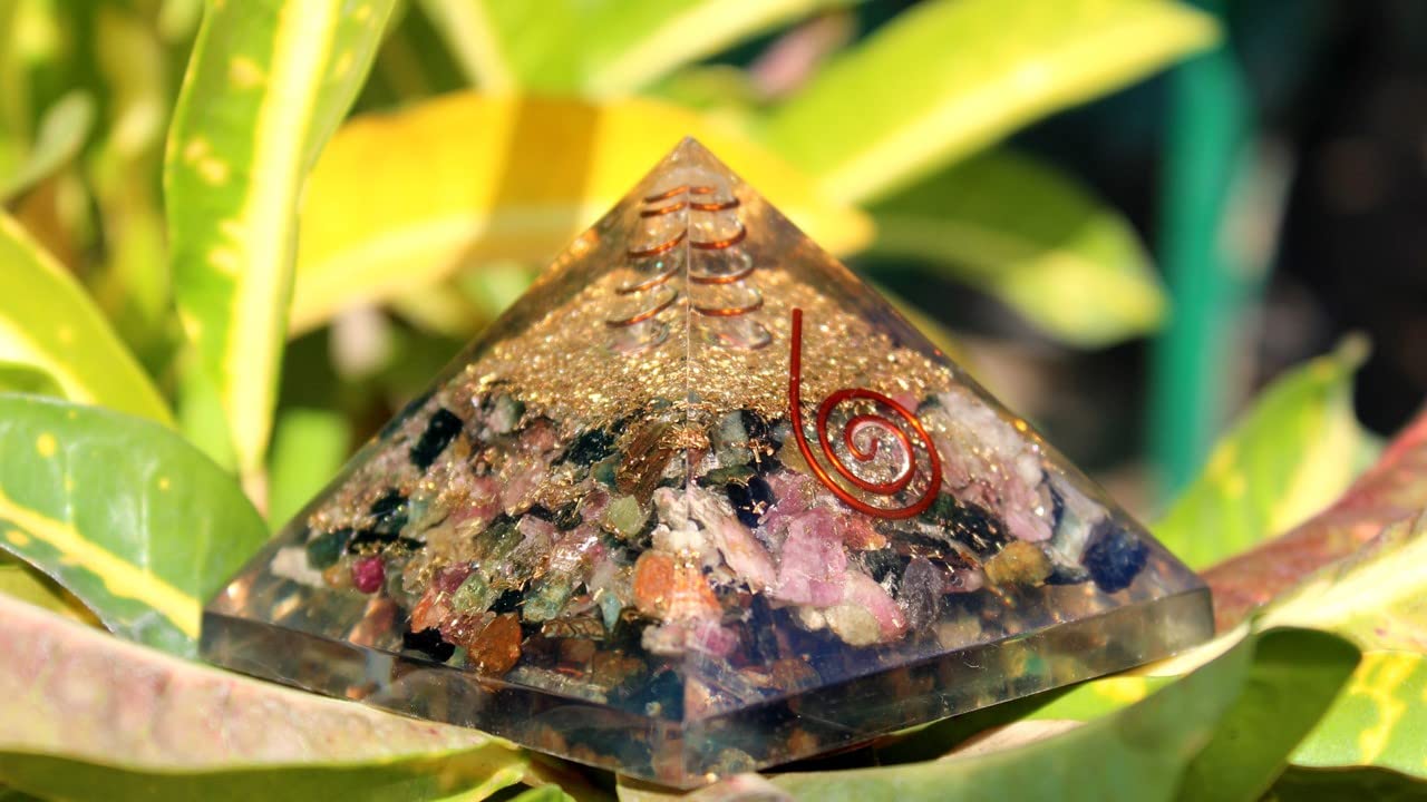 BuyMulti Tourmaline Orgone Pyramid | Emotional Balance & Confidence | Handmade | Home Office Decor