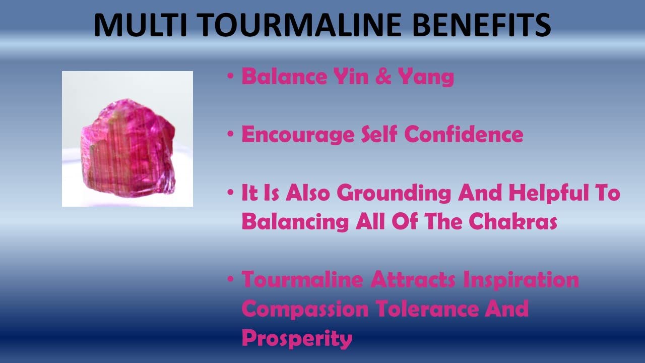Tourmaline attracts inspiration, compassion, tolerance and prosperity. It balances the right-left sides of the brain. Helps treat paranoia, overcomes dyslexia and improves hand-eye coordination. Tourmaline releases tension, making it helpful for spinal adjustments.
