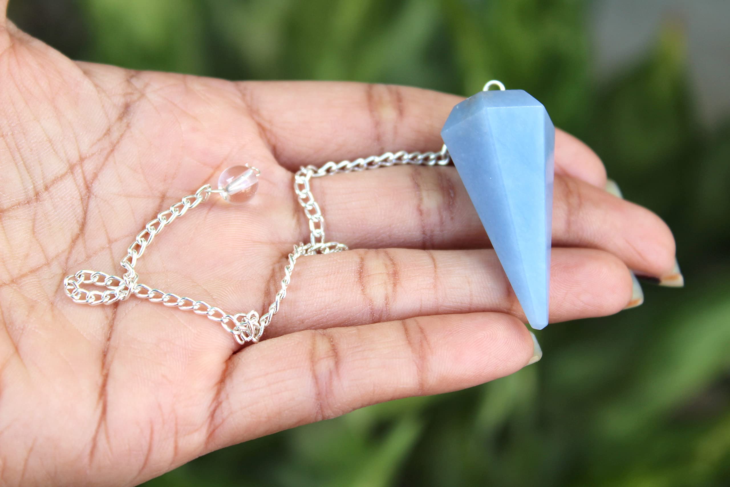 BuyNatural Angelite Cone Pendulum | Spiritual | energy | Prosperity | Angelite Pendulum