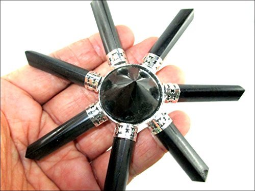 Approx. 3.5 – 4 inch wide. Jet Black Tourmaline New 7 Point Pyramid Generator Gemstone India Handcrafted A++ 40 Page Jet International Crystal Therapy Peace Progress Prosperity Power. Genuine Authentic Original; Pouch Available. Best Seller Worldwide. Kindly note that since all our products are handcrafted, there always exists slight deviations in size, shape, color of the products compared to image shown here. Image is just a reference