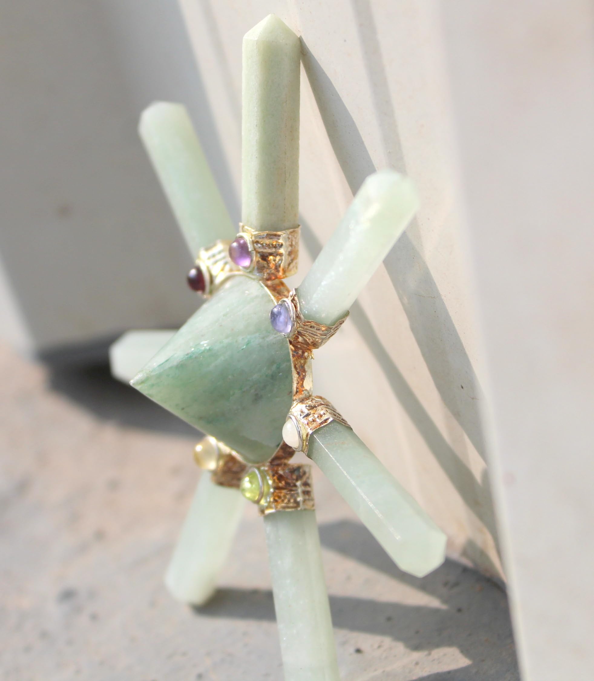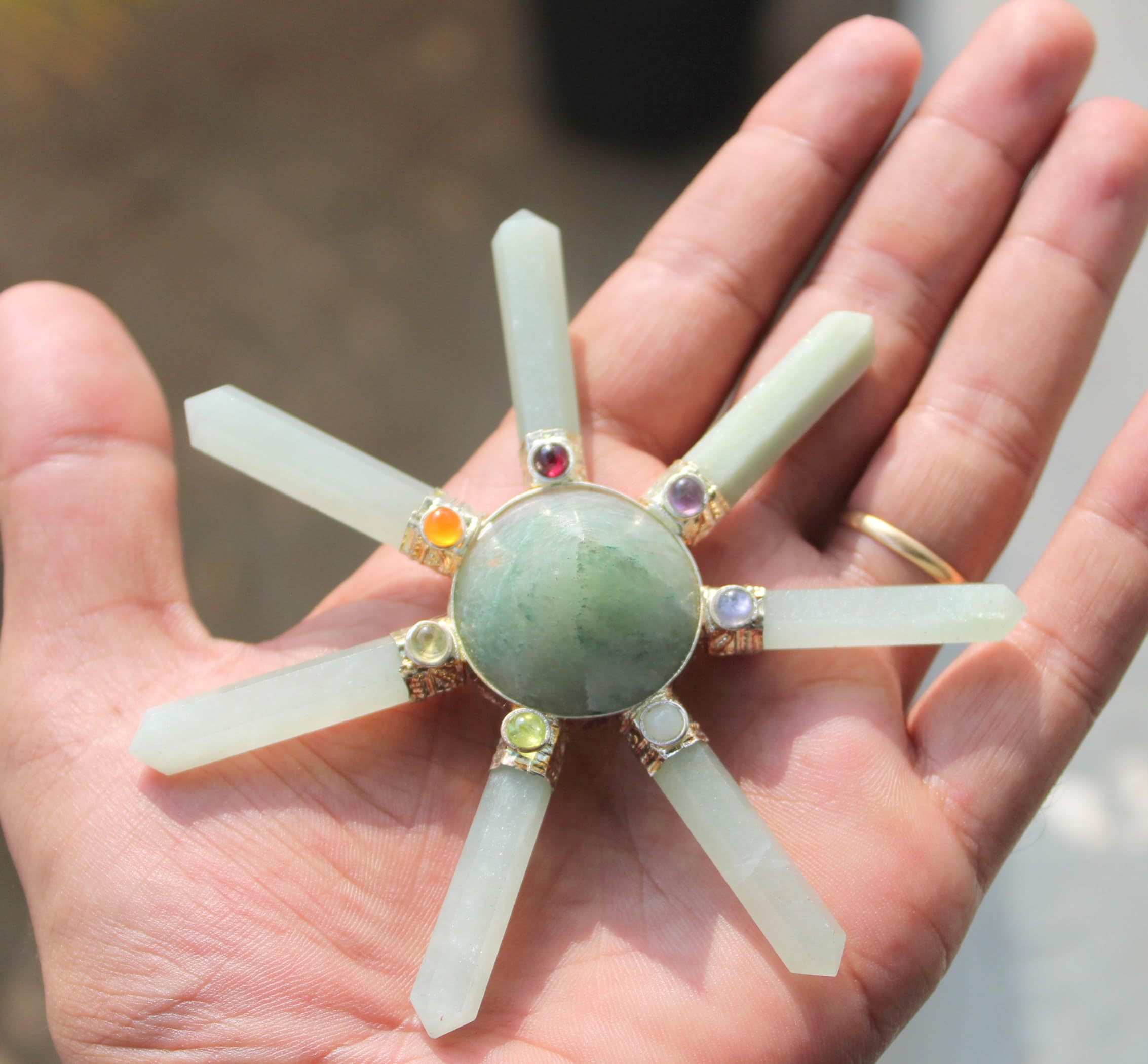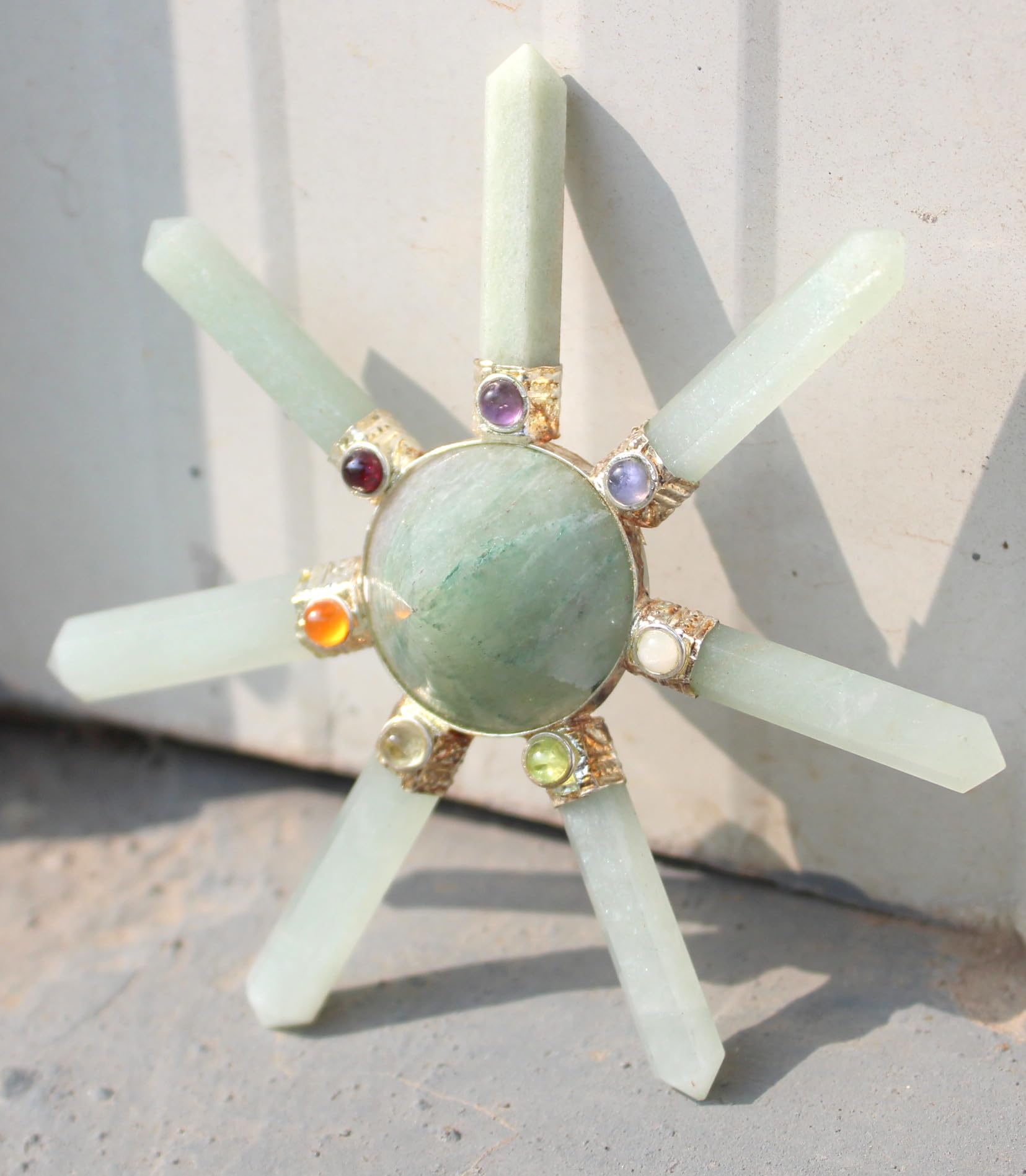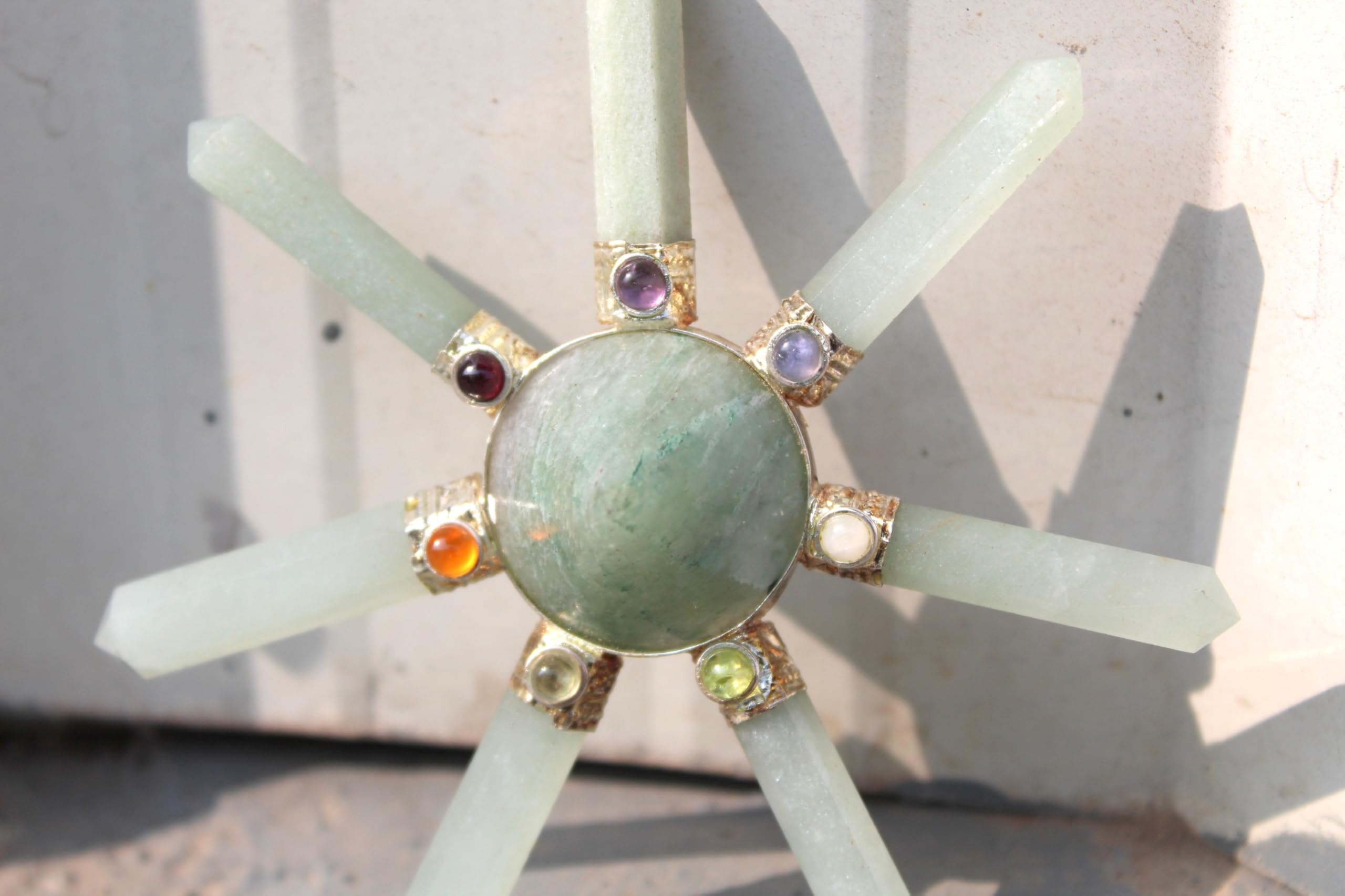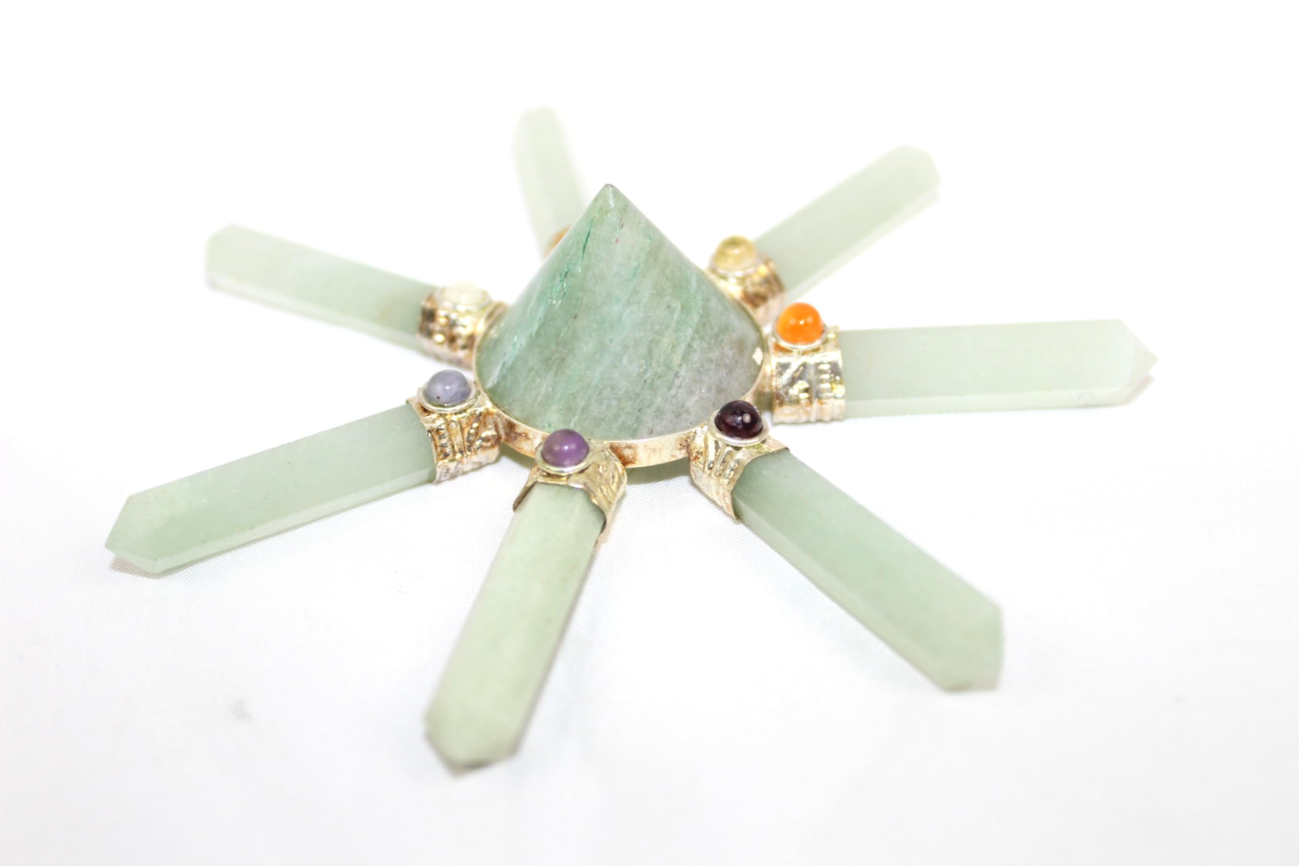 Green Aventurine 7 Point Pyramid Energy Generator. Exclusively Product Chakra Pyramid Generator Best Quality Crystals . Kindly note that since all our products are handcrafted and carved there exists slight deviation in size, shape, color looks compared to the image shown here ; however the Healing Qualities & Metaphysical Properties are EXCELLENT.