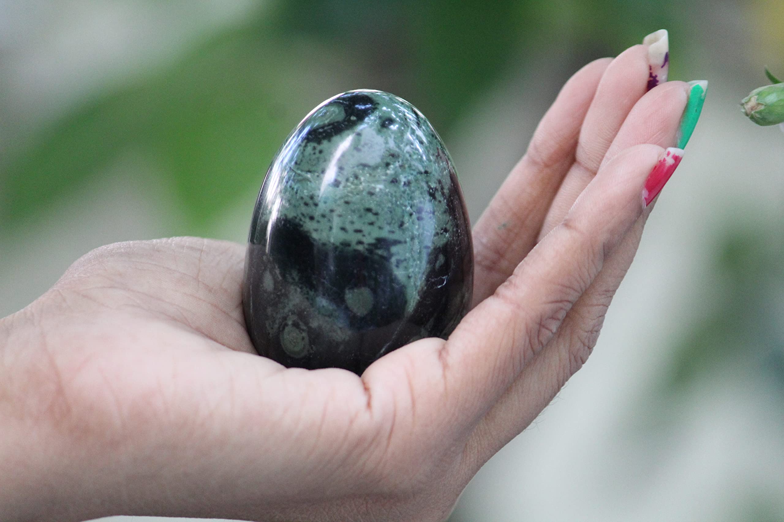 Authentic Kambaba Jasper Egg (2 Inch): Handcrafted from natural Kambaba Jasper, known for its calming and grounding energy. Each egg is unique in pattern and color.