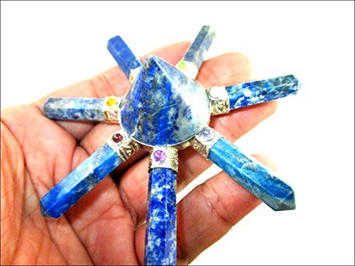 Approx. 3.5 – 4 inch wide. Jet Lapis Lazuli 7 Point Pyramid Generator with Chakra Cabochons Gemstone India Handcrafted A++  Crystal Therapy Peace Progress Prosperity Power. Genuine Authentic Original; Pouch Available. Best Seller Worldwide. Kindly note that since all our products are handcrafted, there always exists slight deviations in size, shape, color of the products compared to image shown here. Image is just a reference