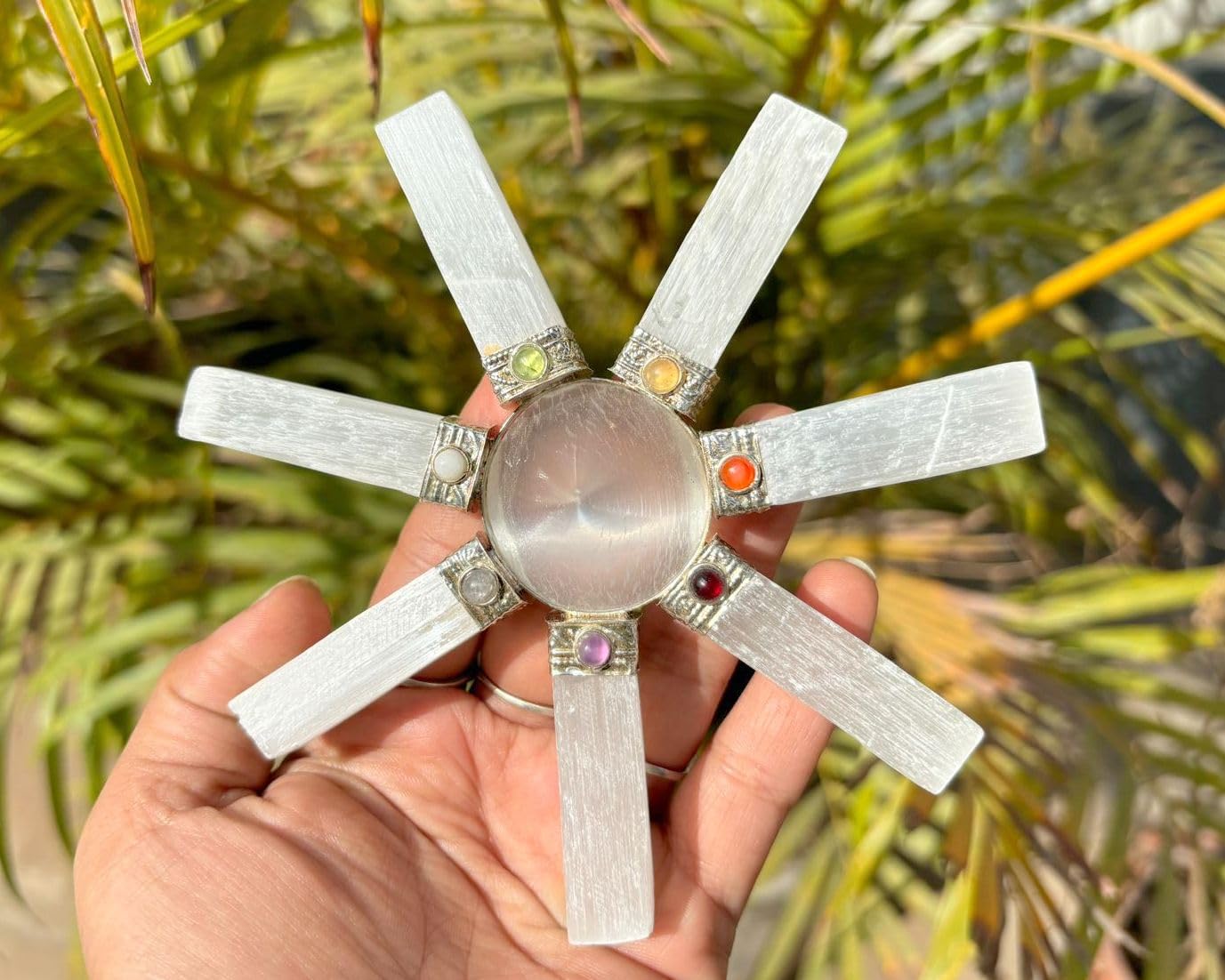 BuyNatural Selenite Energy Generator | 7 Point | Purification | Cleanse Crystal | Energy Healing | Chakra Balancing