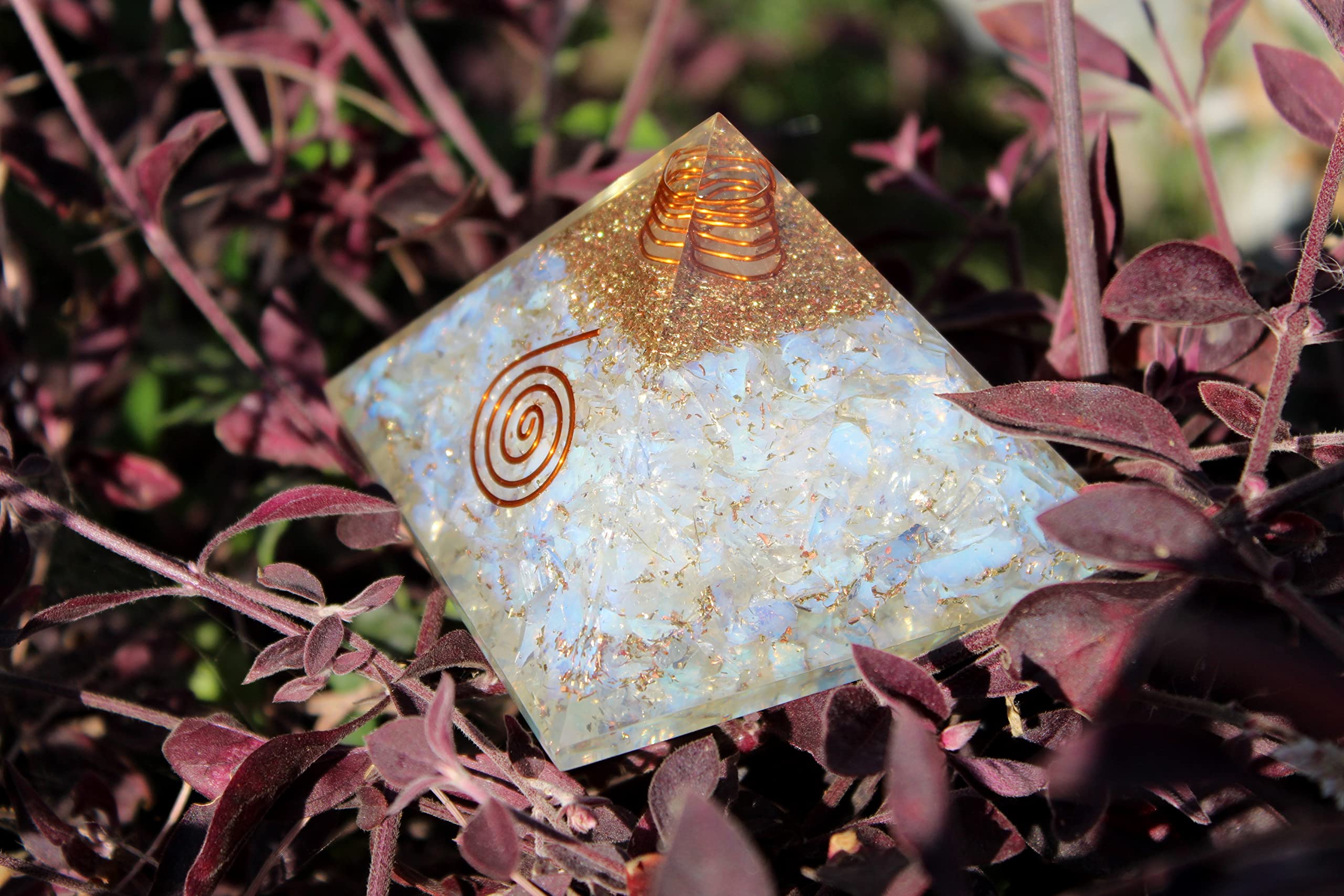 Jet Authentic Opalite Orgone Pyramid Copper Coil . Approx. 100-120 Grams . Kindly note that since all our items are handcrafted there always exists minor deviations in size, color and looks. However, the Healing Qualities and Metaphysical Properties are excellent.