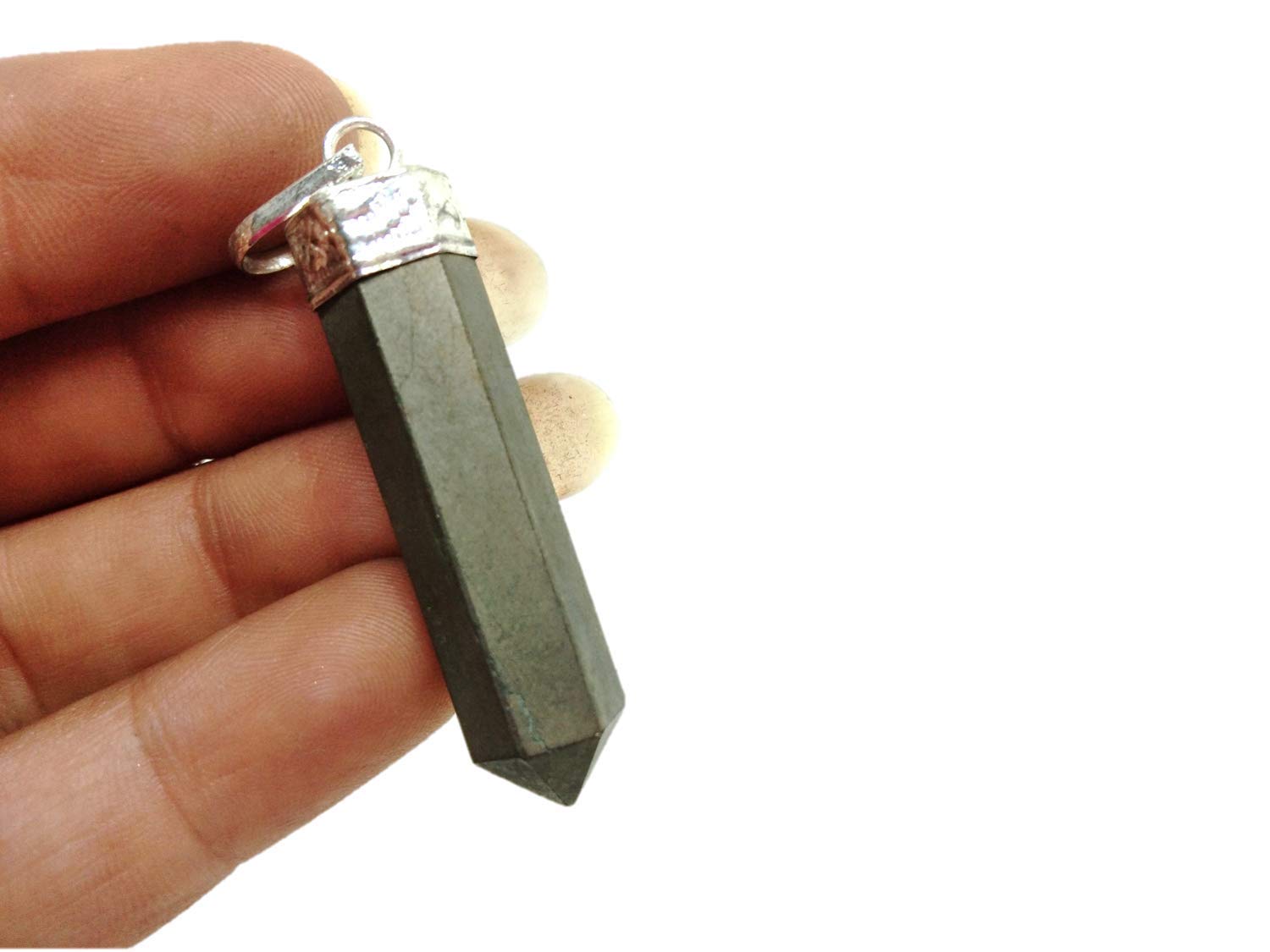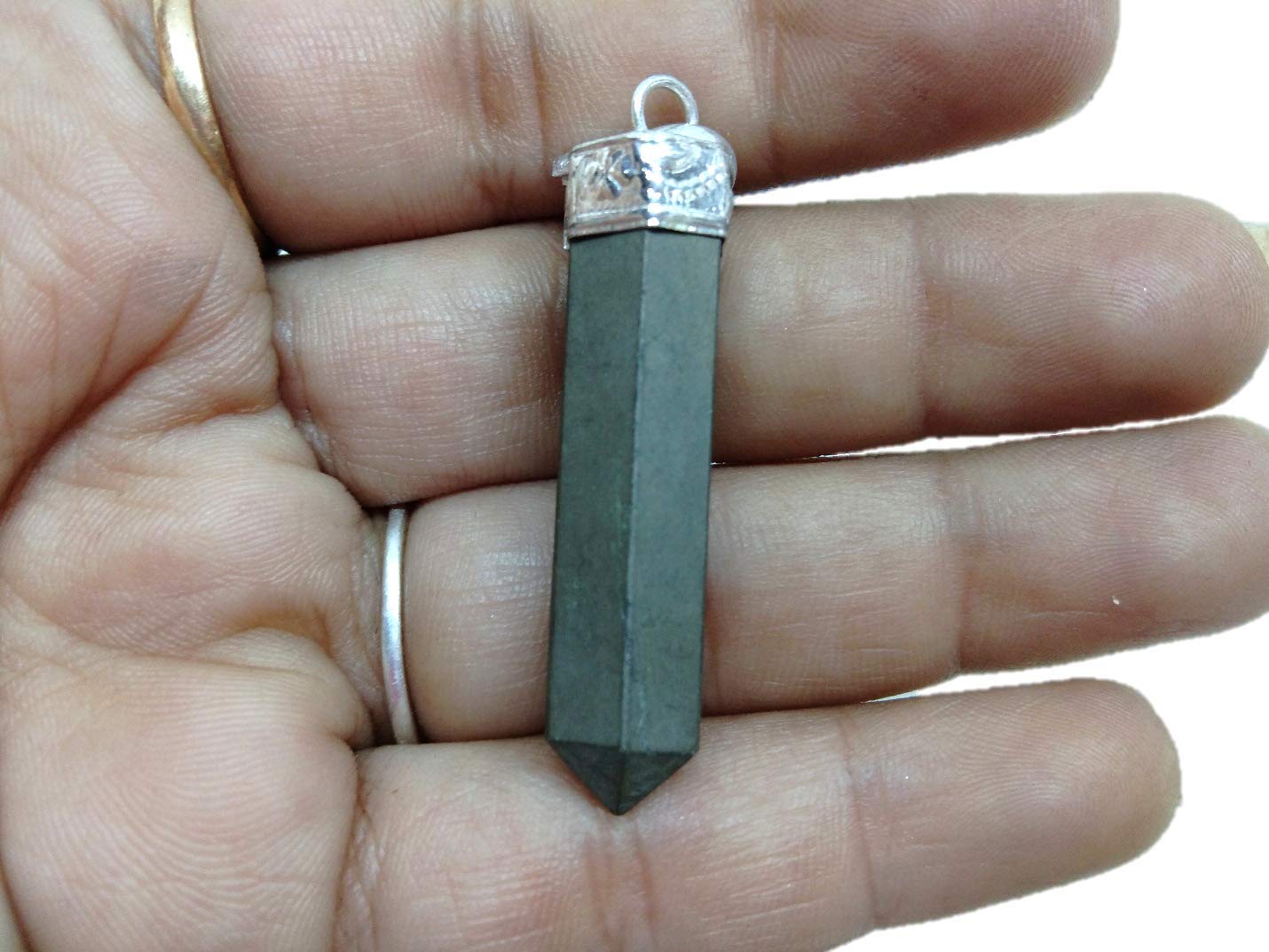 Jet Pyrite Point Pendant Jet International Crystal Therapy 2 inch approx. Jet International Healing.