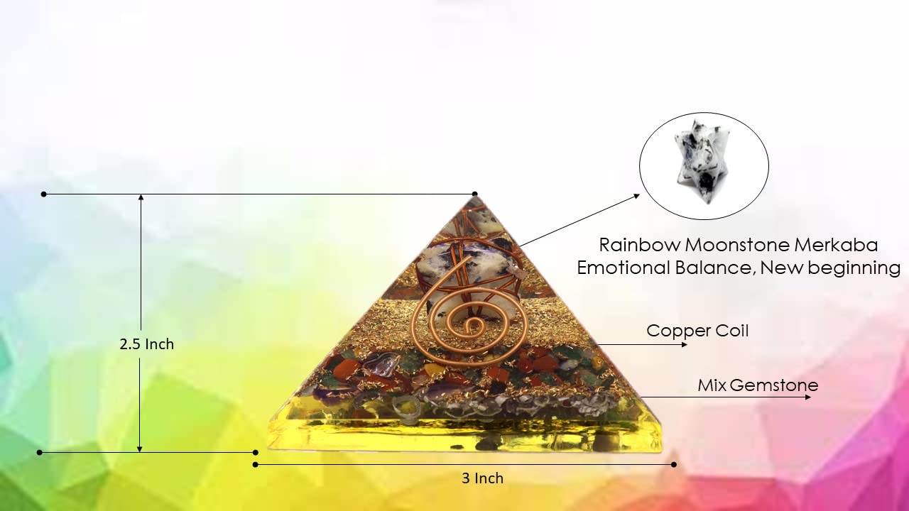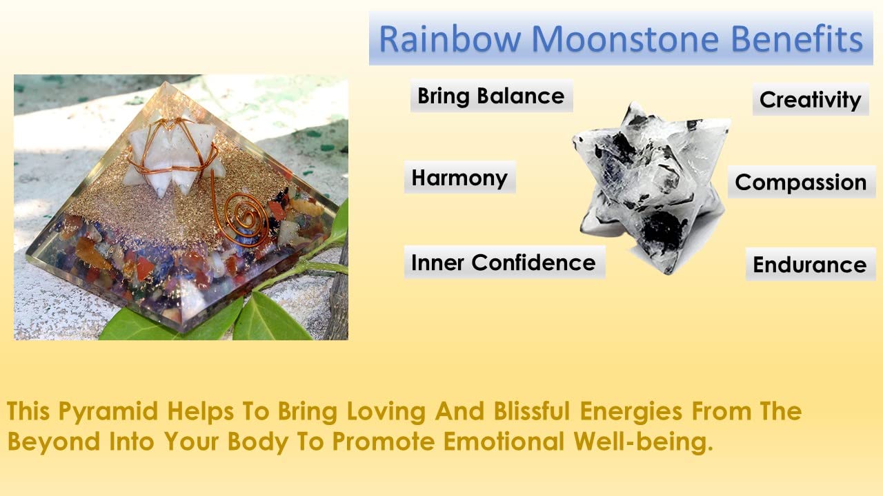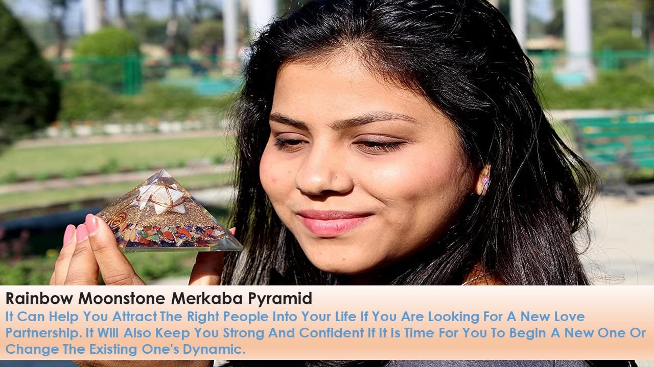 BuyRainbow Moonstone Merkaba Orgone Pyramid | Chakra Balancing | Handmade | Home Office Decor