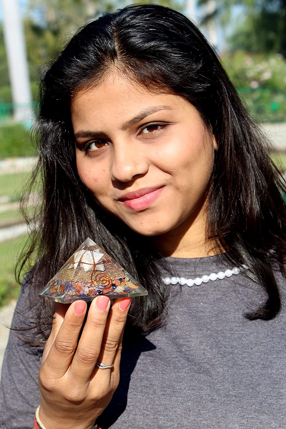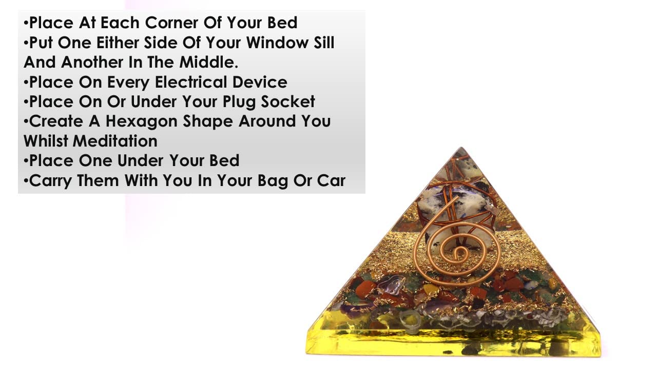 Jet R Moonstone Gemstone Amethyst Merkaba Chakra Orgone Pyramid Lucky Ions Generator 2.5 inch Copper Coil. This is a wonderful piece of art giving lots of Strength, Power, Mental Peace to whosoever wears it. Kindly note that since all our products are handcrafted and carved there exists slight deviation in size, shape, color, looks compared to the image shown here; however the Healing Qualities & Metaphysical Properties are EXCELLENT. Image is just a reference. Best for Peace, Power, Prosperity.