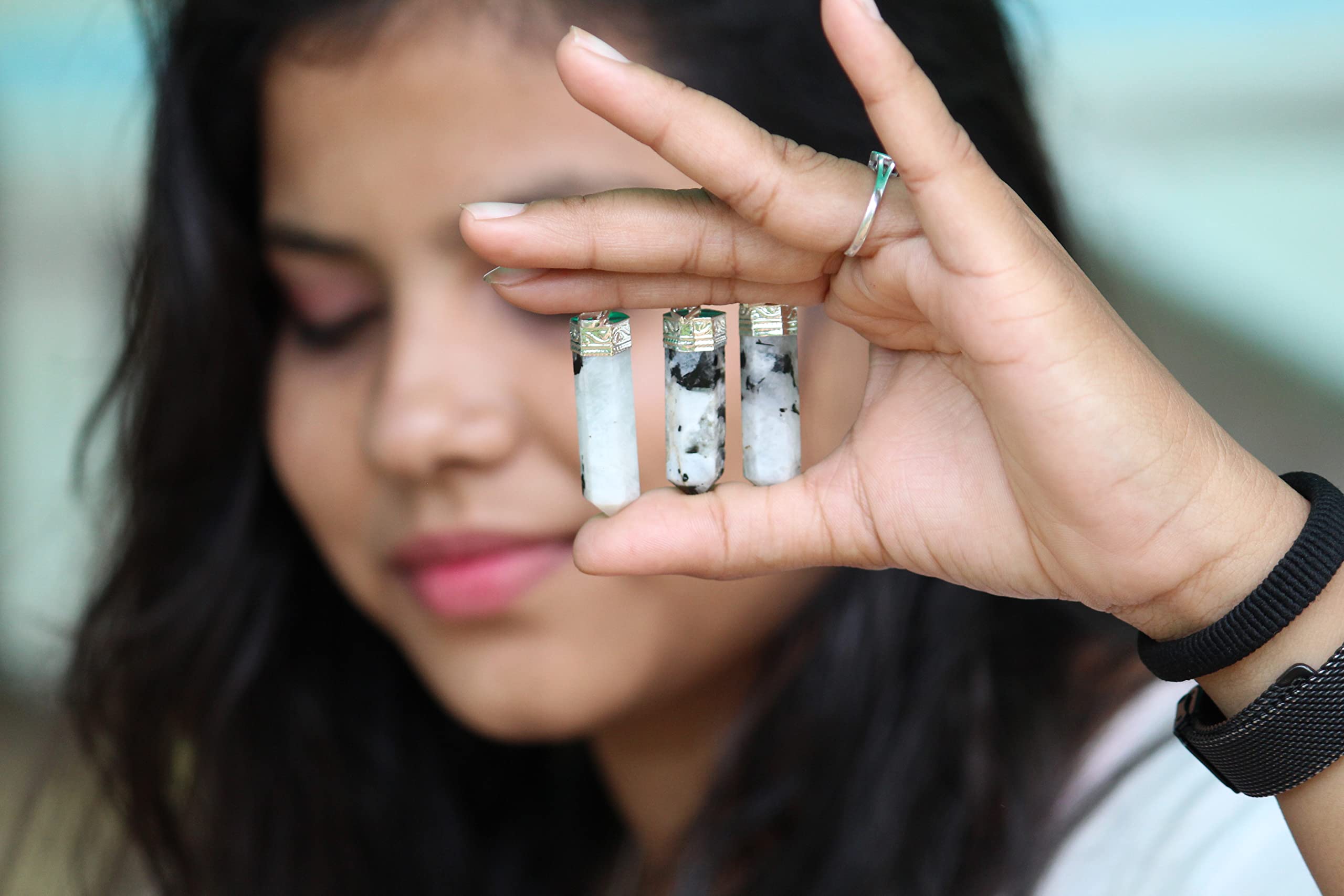BuyRainbow Moonstone Point Pendant | Spiritual | Gemstone Healing | Balance | Natural crystal Point Pendant