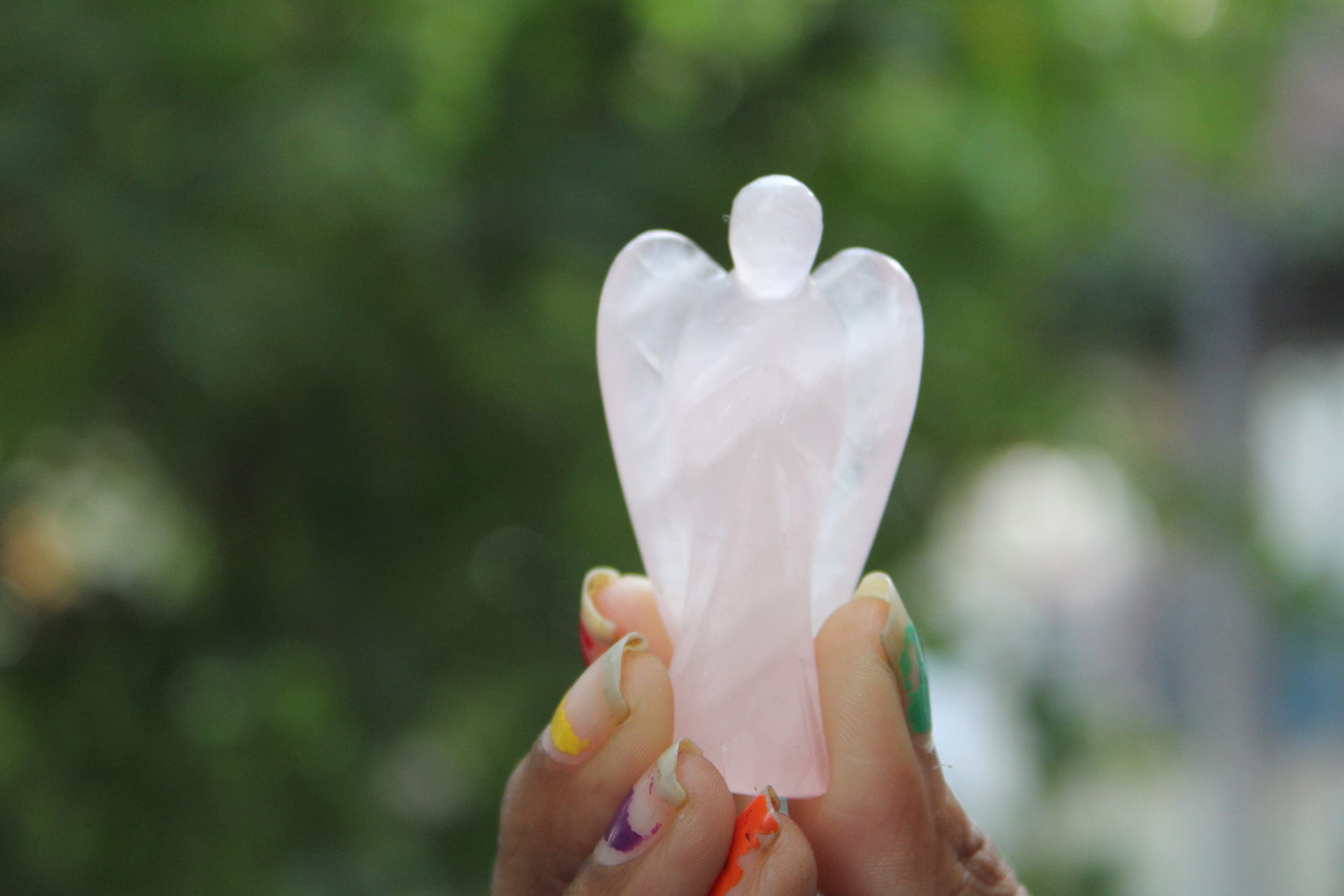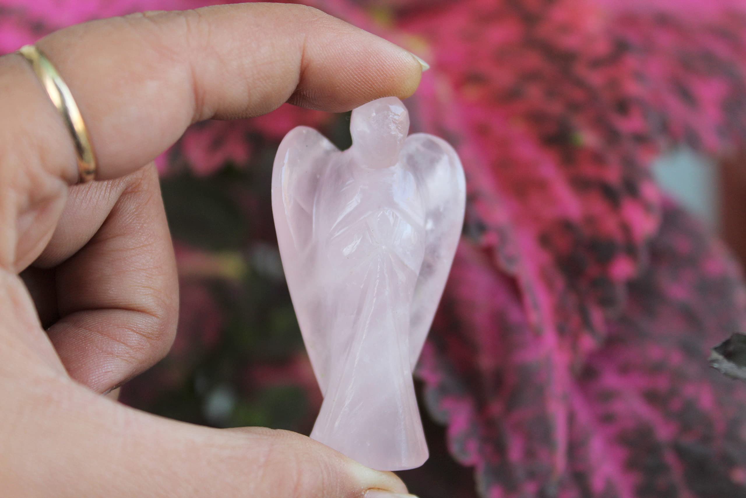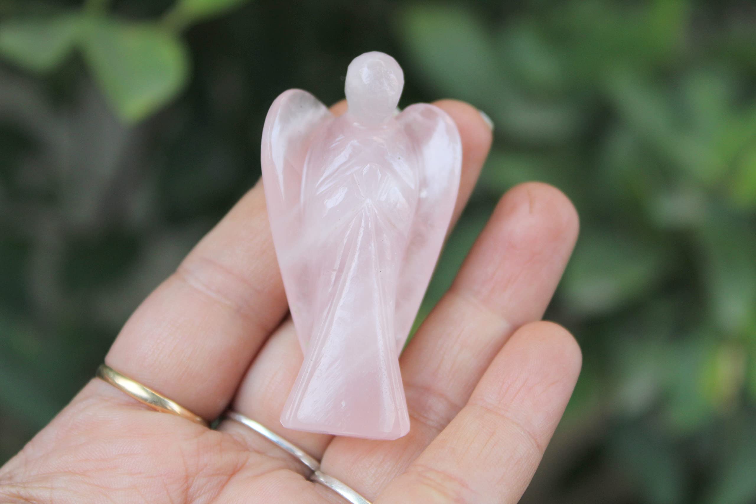 Rose Quartz Gemstone Angel | 2-inch | Promote Love Relationship | Natural Crystal Angel | Home Office Decor