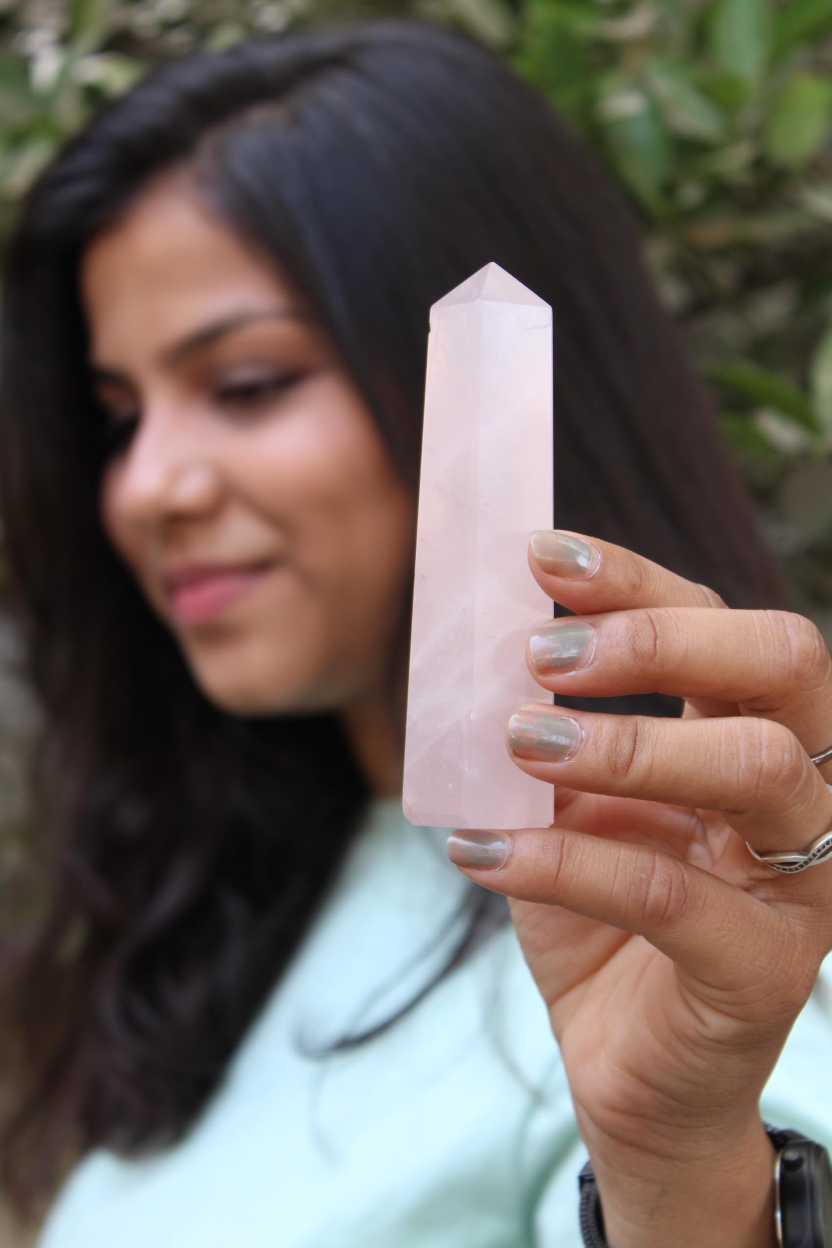 Jet New Energized Rose Quartz Gemstone Tower Approx Length 3.5 To 4 Inch Approx Weight 80-120 Grams. Best for Healing, Meditation, Crystal Therapy, Positive Energy, Chakra Balancing, Peace of Mind, Meditation, Gift, Bonding, Spiritual Awakening, Psychic Awareness, Wicca, Pagan Rituals, Divination, Display or Show Piece, Massage, Handheld Therapy, Reiki, Power, Protection, Success, Progress, Prosperity, etc
