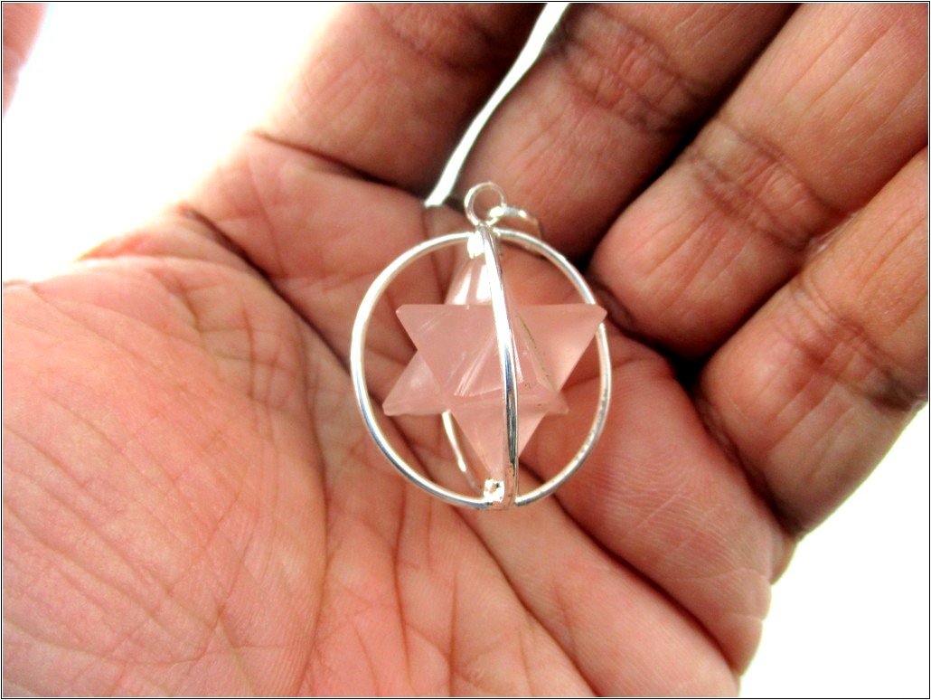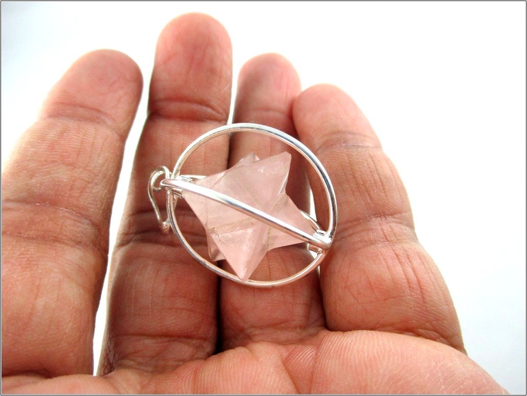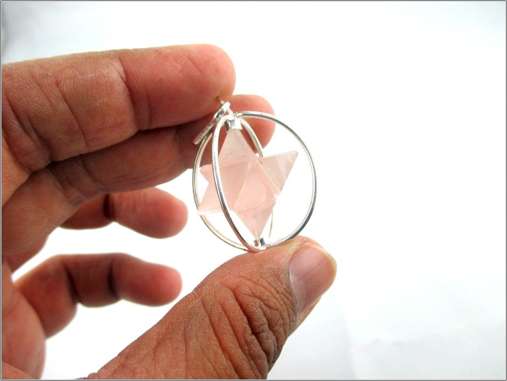 BuyRose Quartz Spinning Star Merkaba Pendant | Emotional Healing Relationship promote love | Spinning Merkaba Pendant
