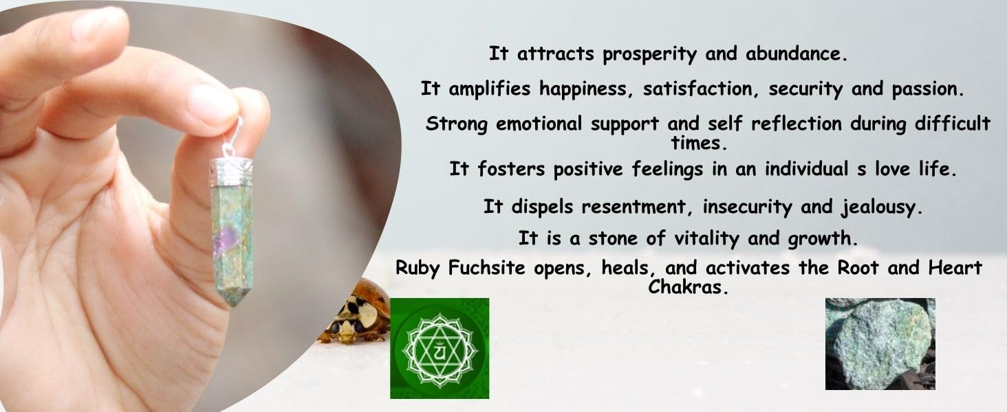 Top Quality Ruby Fuschite Point Pendant. A++ Grade Best Proved Results Fully Energized by us. Kindly note that since all our products are handcrafted, there will exist slight deviation in size, shape, color and looks compared to image shown here; however the Healing Qualities and Metaphysical Properties are EXCELLENT.