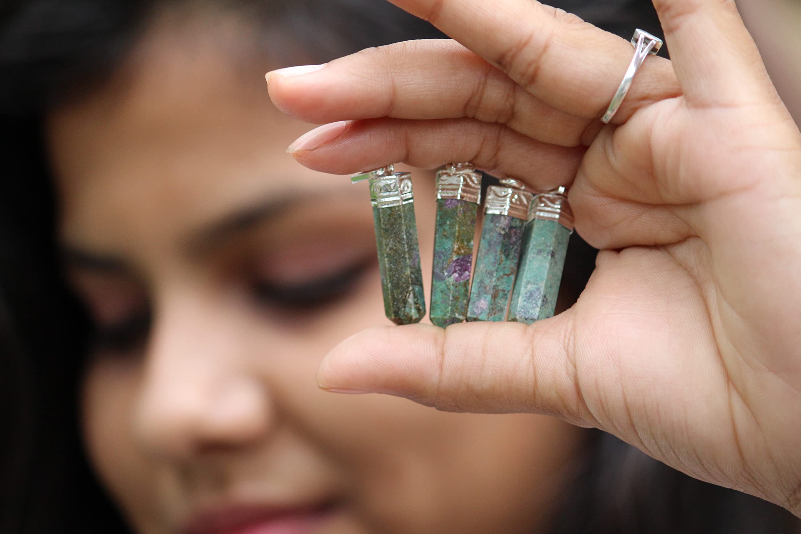 BuyRuby Fuschite Point Pendant | Gemstone healing | Crystal Therapy | Reiki Chakra Balance | Natural Crystal Pendant