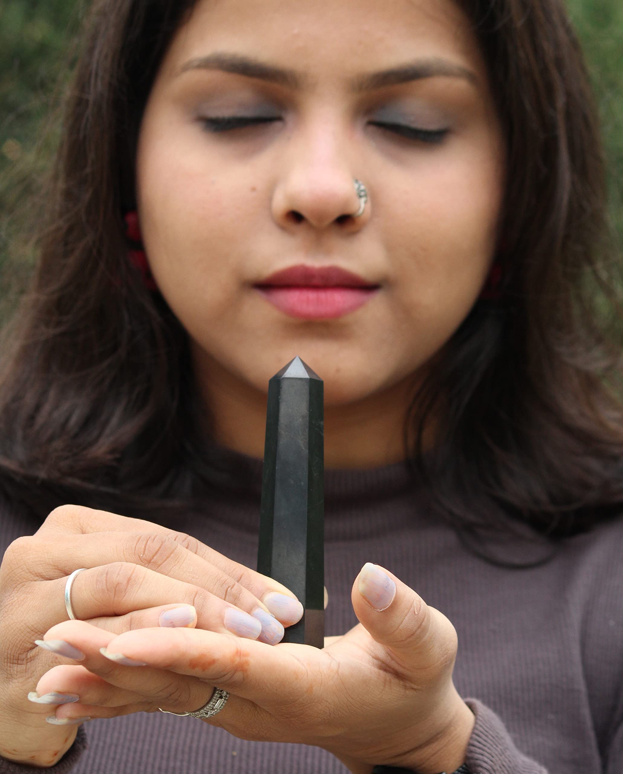 BuyShungite Gemstone Obelisk | 3.5-4 inch | Reduce inflammation | Natural | Home Office Decor